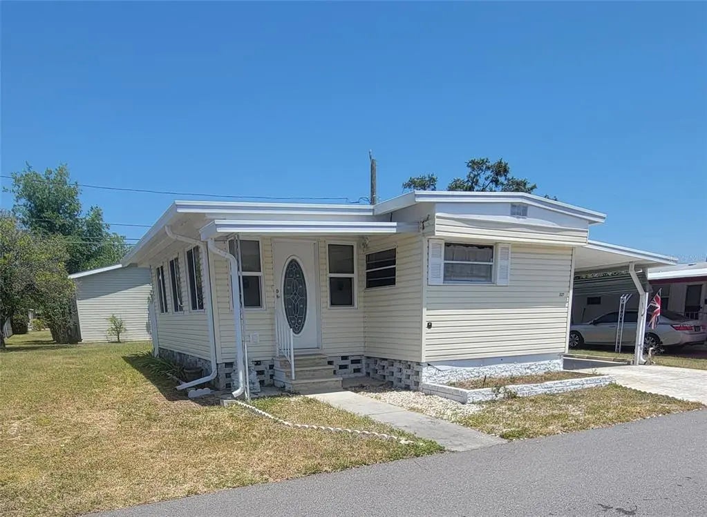 Charming home with spacious Florida room in wonderful waterfront community of Sky Harbor Estates. Centrally located in Pinellas County close to beaches, airports, shopping, bus stops and highways. You will love the updated kitchen with new stainless refrigerator & double sink, dining nook and inviting breakfast bar. The kitchen has plenty of storage, cabinets and some with easy slide out drawers. Plenty of light and built-in desk with Boze radio and CD player. The dining room has lots of room for your family and friends with classic wooden dining set and hutch. The spacious living room has central heat and air with comfortable furnishings and double-paned hurricane resistant windows. The A/C has just been serviced, and a new blower motor was installed. The electrical panel has been upgraded, and all breakers are up to code. New roof was put on in 2011. Great for second vacation home or year-round living. The listing includes a deed for your land as well as the home. Low homeowners' fees and quiet well maintained friendly community of Sky Harbor. Room for 2 cars in carport and a shed with ample storage and newer washer and dryer also included! Move in ready and a must see for this attractive price.