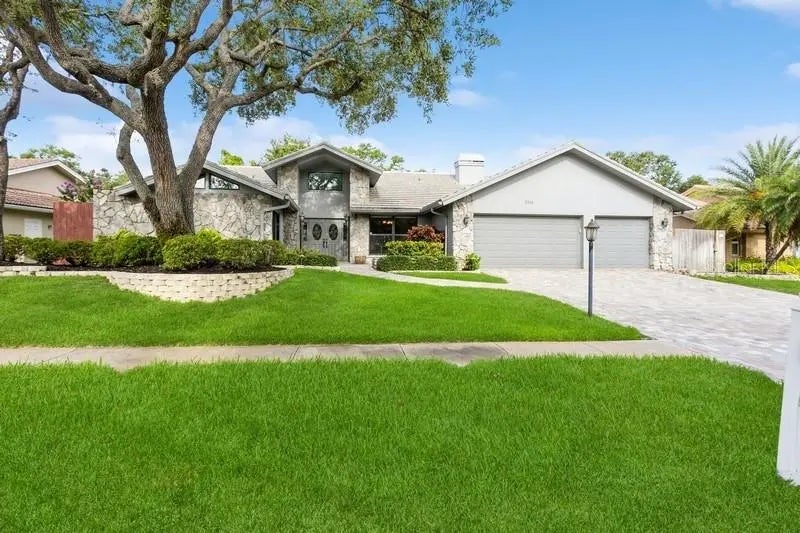 This Home just keeps getting better!! Sellers have decided to replace the tile roof for your Peace of Mind! Don't miss this incredible opportunity to own an extraordinary 3,135 sqft. ranch-style masterpiece in Clearwater’s sought after Ashland Heights community. Built in 1987 and thoughtfully updated, this single-story home features a split floor plan with 4 bedrooms, 3.5 bathrooms, and a 3-car garage with a paver driveway. A striking stone-front façade welcomes you through elegant double doors into a light-filled interior with soaring cathedral ceilings, new ceramic tile, bamboo wood flooring, and plush bedroom carpeting, all freshly painted for a modern feel. The chef’s galley kitchen, equipped with an integrated dishwasher, glass cooktop range, built-in microwave, breakfast bar, dinette, and sleek light fixtures, flows into a cozy family room anchored by a stunning stone wood-burning fireplace, perfect for gatherings. A formal living and dining area with cathedral ceilings elevates entertaining. Double doors lead to the expansive primary suite which offers a lovely sitting area and en-suite bath with a soaking tub, tiled shower, dual granite vanities, a large walk-in closet, and a private deck for serene relaxation. The secondary bedrooms are sizable and have abundant closet space. The backyard oasis includes a heated saltwater pool, screened lanai, paver deck, outdoor kitchen with granite countertops and propane cooktop, plus an outdoor bath, all set on a fenced 0.31-acre lot with lush landscaping, lighting, and a separate dog run. Equipped with PGA windows, hurricane shutters, a 50-year concrete tile roof (installed 2000), two serviced AC units ensure peace of mind. A generous laundry room off the garage provides abundant storage and convenient half bath. Located just minutes from Clearwater’s iconic beaches and Dunedin’s Honeymoon Island, with upscale dining, shopping, golf, and entertainment nearby, this Ashland Heights estate blends elegance, comfort, and coastal charm. This is the perfect chance for Buyers who loved this home before to secure it now with unmatched savings. Act fast- this exceptional value won't last long! Schedule your showing today!!
