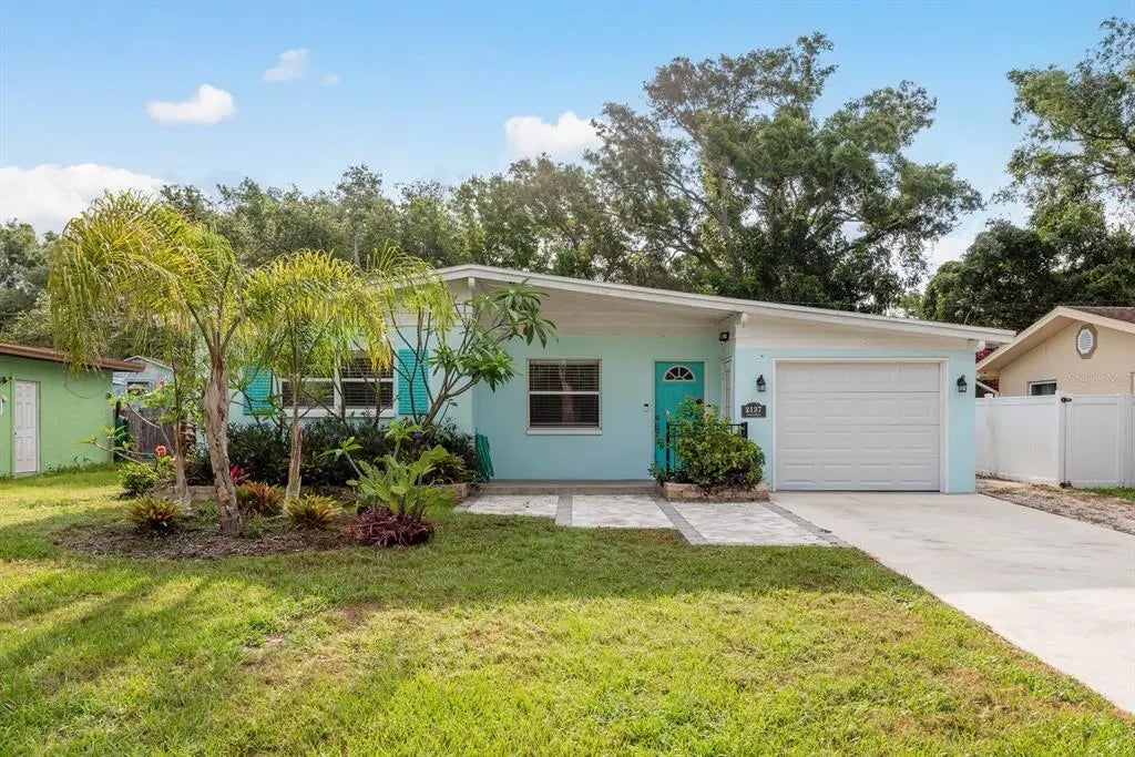This charming 2-bedroom, 1-bathroom home offers a 2021 roof and is perfect for enjoying the Florida lifestyle. Set on a well-kept lot with updated gardening and landscaping, a beautiful brick walkway welcomes you home. The exterior has been recently painted and features a converted garage that was formerly a carport, providing added functionality and storage. Inside, the home features tile flooring throughout for easy maintenance and a cohesive look. The kitchen and dining space are combined for a cozy feel and include stainless steel appliances. Both bedrooms are equipped with ceiling fans and share a full bathroom. A convenient interior laundry room adds to the home’s practical layout. Step outside to a fully fenced yard—most of the fencing has been recently updated—offering privacy and space for pets or entertaining. Enjoy outdoor dining or weekend barbecues under the covered patio, perfect for taking in the beautiful Florida weather. Located near a lake and just minutes from a variety of dining options, shopping centers, and a short drive to the stunning Gulf beaches, this Clearwater gem is a must-see. Schedule your showing today.