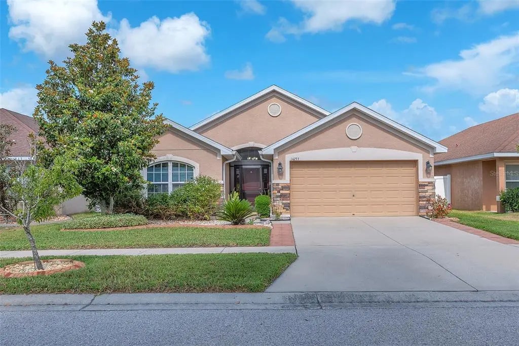 Welcome to Ayersworth Glen. This beautiful one story 2123 sq. ft. home offers 4 bedrooms, 2 full baths, 2 car garage, and an oversized covered & screened in lanai. The kitchen features beautiful wood cabinets, stainless steel appliances, recessed lights and is open to the great room and breakfast nook. The bedrooms are in a split plan for plenty of privacy. Off the formal dining room lies the primary bedroom with two walk-in closets. The primary bath includes a double sink vanity and tub/shower combo. Bedrooms 2 and 3 are split between a full bath. Bedroom 4 boasts double doors and can be used as a private study or sitting area if desired. Crown molding is located throughout the main living areas. Laundry room includes newer LG Washer & Dryer. The front of the home includes a screened in porch area with beautiful landscaping and concrete curbing. The backyard has a huge 16x35' covered/screened in lanai with fan hookups and two entry doors. Backyard is fully fenced and offers a variety of fruit trees (Banana, Mango & Guava), and a nice size storage shed. This community features a large resort style pool, dog park, basketball court, clubhouse and fitness center. Easy access to I-75, shopping, restaurants and a quick drive to downtown Tampa or USF. Come see this beautiful home today!