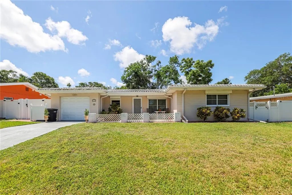 Welcome to this well-maintained solid block home nestled in a desirable Clearwater neighborhood. Just 6 miles from the world-famous white sands of Clearwater Beach! Featuring neutral 16” tile throughout, this bright and airy residence offers comfortable Florida living with both front and back courtyards—perfect for soaking up the sunshine or relaxing outdoors. The flexible floor plan includes a bonus Florida room, already framed for a closet, offering easy conversion to a third bedroom or an ideal space for a home office, gym, or creative studio. The light-filled primary suite features its own en suite bathroom for added privacy and convenience. Enjoy entertaining in the spacious, fenced backyard- pool sized and ready for your dream outdoor retreat. This home is zoned for Dunedin Middle and Dunedin High, both magnet schools, making it a great choice for families seeking quality education options. Convenient access to grocery stores, pharmacies, and restaurants. New roof 07-25. Seller is relocating & will entertain all reasonable offers!