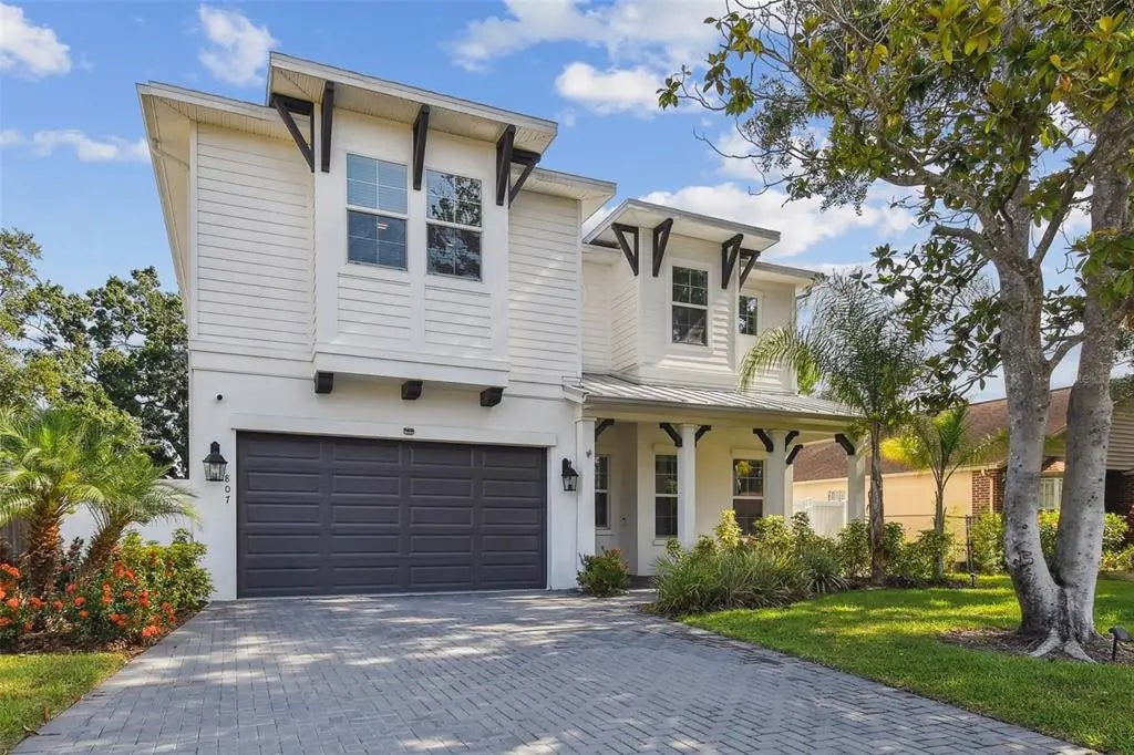 Motivated sellers. Bring all offers. Better-than-new and extensively upgraded beyond standard new construction, this showcase-worthy five-bedroom, 3.5-bath luxury home with an office and spacious flex room is ideally in the heart of Riverside Heights, just minutes from Tampa's Riverwalk, Armature Works and vibrant downtown. Inside, you'll find wide-plank engineered hardwood floors throughout, an open-concept layout, and a designer kitchen featuring quartzite countertops, herringbone backsplash, stainless steel appliances, 42" wood cabinetry, and a walk-in pantry. The first floor includes a private office, formal dining, guest suite with full bath, and a bright, open family room. Upstairs offers three secondary bedrooms, a large double-vanity bath, and an expansive flex room ideal for a gym or media space. The luxurious primary suite includes dual custom closets, garden tub and walk-in shower. Additional highlights: spacious mudroom with power outlet next to garage, epoxy-finished garage, ceiling fans throughout, and a large fenced backyard with covered lanai and room for a pool. In one of Tampa's sought-after neighborhoods with top-tier dining, nightlife and culture just blocks away. Where luxury meets lifestyle.