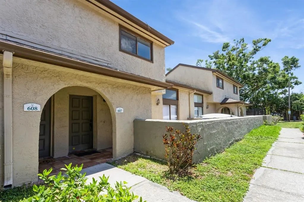 **PRICE IMPROVEMENT!** SELLER IS OFFERING A 2YR/1YR RATE BUY-DOWN TO QUALIFIED BUYERS, USING OUR PREFERRED LENDER! Bring on the offers! Approximately 1,218 square feet, this two-bedroom, one-and-a-half-bathroom Spanish-style townhome features a variety of modern updates and community amenities. The large living room space offers vaulted ceilings and open floor plan leading to the updated kitchen with breakfast bar and dining area. Stone countertops complement the solid wood dovetailed cabinetry and stainless steel appliances. Front load washer and dryer are included. The primary bedroom and second bedroom both have newly installed ceiling fans along with the new wood-look laminate flooring throughout the upstairs. Both bathrooms have been updated with new vanities, toilets, light fixtures and tub. New vertical blinds provide privacy and light control. The home's climate is controlled by a smart thermostat and a new Carrier AC unit installed in 2020. New roof installed in 2024 by the HOA. For added peace of mind, its not located in a flood zone! Residents of this pet-friendly community have access to a clubhouse, pool, dog park, and tennis courts. Included in the monthly fee are grounds and exterior maintenance, roof, water, sewer, trash, and pest control. The townhome style condo features a front patio and a private back patio, ideal for enjoying the Florida outdoors. Easy access to US 19, and a short drive to restaurants, shopping, Clearwater beach, and only 22 minutes to the Tampa Airport.