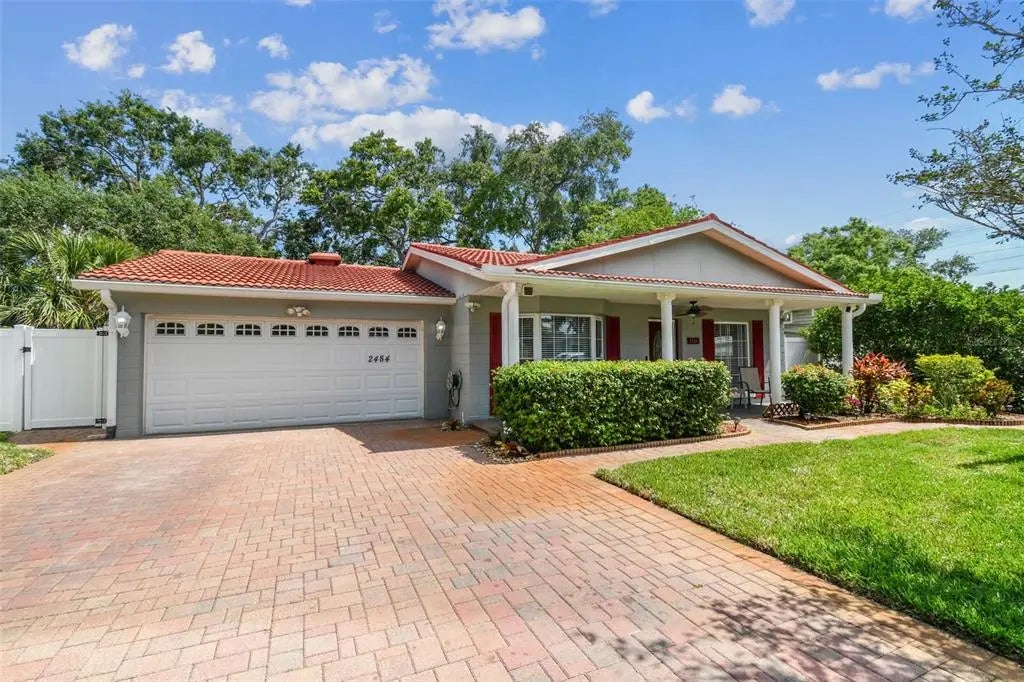 Welcome to this charming 2-bedroom, 2-bath, 2-car garage home nestled in the heart of Clearwater! Featuring beautiful hardwood flooring throughout and an open concept floor plan, this residence offers a warm and inviting ambiance. Enjoy peace of mind with updated windows and fresh interior paint. The thoughtfully designed kitchen boasts cherry wood cabinetry, a custom range hood, granite countertop’s, with a center island, and a cozy dining room with a bay window that fills the space with natural light. Both bathrooms have been tastefully updated with modern vanities. A spacious Florida room provides additional living space, while the outdoor birdcage-covered patio with retractable awning offers the perfect setting for relaxing or entertaining. Enjoy serene views of the lush, tropical landscaped backyard—a true private oasis. This home also features a durable barrel tile roof and a brand-new flat roof. Conveniently located near St. Pete College Clearwater Campus, BayCare Ballpark, Sam’s Club, Costco, and a wide range of shopping and dining options. With Tampa International Airport and Clearwater Beach just 20 minutes away, you’ll love the location as much as the home itself!