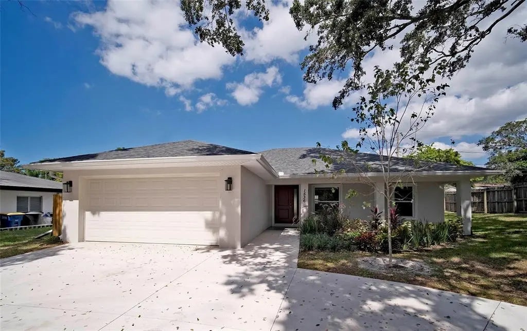 This energy saving, custom-built in 2022 block home offers 1,650 htd sq ft. with 3 beds, 2 baths, 2-car garage. Check out the video. Property is fenced on 3 sides. Enjoy the covered front and back porches. The large tree in the front yard offers shade for parking on the large circular driveway, perfect for multiple vehicles. There is also a charging station for electric vehicles. The home's open floor plan allows for entertaining, while the split bedroom layout offers privacy and quiet. Multiple upgrades throughout, including LED lighting w/remote ceiling fans in all bedrooms, living room, and covered patio. The oversized laundry room w/stackable energy efficient washer/dryer and sink is perfect for storage, or flex space. The custom kitchen showcases solid wood cabinetry, crown moulding, granite counter tops, a large island, stainless appliances, and seating for three. French doors open from the eat-in area onto the covered patio and large back yard. The large primary bedroom suite offers a walk-in closet and master bath with double sinks and glass walk-in shower. The other 2 bedrooms and bathroom are located on the other side of the house. The home is located almost next door to the Clearwater Golf Course and near entertainment, beaches, the airport, and schools. This home is absolutely beautiful and move in ready!