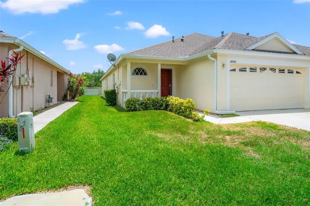 Maintenance free villa in gated Meadow Pointe Community Beautiful 3 bedroom, 2 full bathrooms with a 2 car garage. This home has NO carpet and offers a spacious dining living room combo with crown molding, open to the large kitchen area. Ceiling fan, fireplace, art niche, and built-in recessed media areas with shelving and cabinetry. French doors lead to a screened-in porch, perfect for relaxing. The kitchen features corian countertops, gas range, closet pantry, eat in breakfast area, and plenty of cabinet and counter space. All appliances are included, along with a washer and dryer. The master bedroom has a walk-in closet, dual sinks with vanity area, linen closet, and a large glass enclosed shower. Rent includes access to the Meadow Pointe clubhouse with resort-style amenities: pool, tennis courts, basketball, playground, and more!