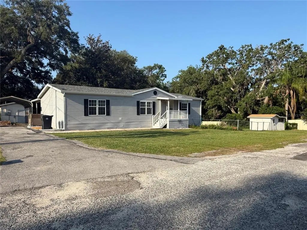 This well maintained 3 bedroom, 2 bath double-wide manufactured home offers comfort, space, and lots of privacy on a third of an acre lot. Enjoy peace of mind with new HVAC (Dec 2022), roof (June 2022), carpeting (May 2025), and well pump (June 2025) for worry free living. Inside this split bedroom floor plan, you'll find a spacious master suite with a large private bath that has a tubular skylight, dual sinks, walk in shower and additional storage. The second door in the master bath opens to the laundry room for convenience and continues through the kitchen. The large secondary bedrooms are located on the other side of the house, each with their own walk-in closets providing plenty of storage. Step out on the 31' x 10' newly screened back porch and enjoy the outdoors year-round. A separate workshop in the backyard is ideal for hobbies, storage or a home-based business as well as a separate well building with additional storage. Bring your RV or boat as there is plenty of covered parking under the oversized carport. With all the updates and space you need, this home is truly move in ready. Come see it for yourself. Schedule your private showing today. Ring camera does not convey.