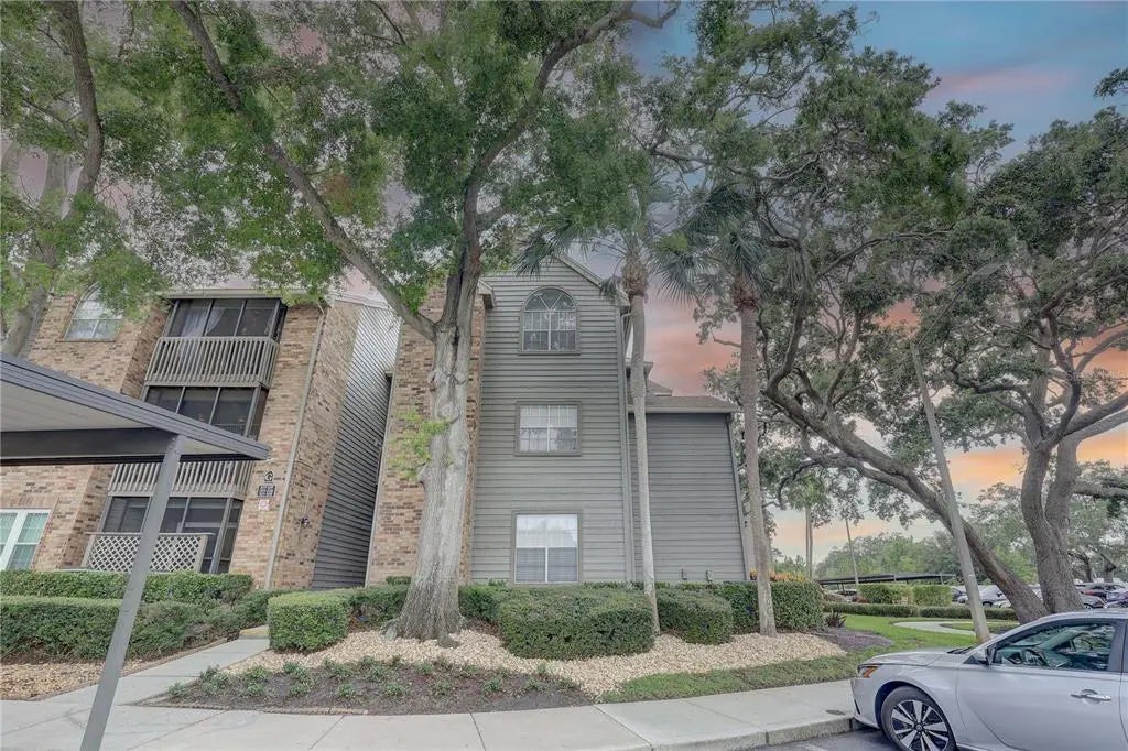 Step into a home where comfort meets charm in this inviting two-bedroom, two-bath condominium nestled within the serene Fountains at Countryside community. Located on the third floor, this 900-square-foot residence combines a thoughtfully designed layout with tasteful updates to create a warm, welcoming space that feels like home from the moment you walk in. As you enter, you'll notice the airy, open-concept living space enhanced by vaulted ceilings and a flow that makes everyday living and entertaining feel effortless. Natural light fills the room through window treatments fitted with classic blinds, offering privacy when desired while still allowing the Florida sunshine to filter in. The combination of central air and heating ensures comfort year-round, while luxury vinyl flooring throughout adds both style and durability. The kitchen blends seamlessly into the living and dining areas, featuring a complete suite of modern appliances including a refrigerator, range, microwave, dishwasher, and even a washer and dryer for ultimate convenience. Whether you’re whipping up a casual breakfast or preparing a meal for friends, the layout and functionality of this space will meet all your culinary needs. The primary bedroom is a quiet sanctuary featuring a built-in closet and direct access to its own full bathroom. The second bedroom, also fitted with a built-in closet, is perfect for guests, a home office, or a cozy retreat. The second bathroom is located conveniently nearby, providing privacy and space for everyone. Beyond the interiors, your private screened patio becomes a peaceful outdoor escape. Enjoy your morning coffee or wind down in the evenings with gentle breezes and no worries about bugs or interruptions—just you and the comfort of your own space. For those who appreciate community living, the amenities here make every day feel like a staycation. Cool off in the community pool, stroll along the sidewalk-lined streets, or simply relax knowing that your monthly association fee covers essentials like water, sewer, trash, cable TV, internet, exterior maintenance, and even pool care. Assigned and guest parking add to the ease of daily living, while the pet-friendly policies allow for two small pets (up to 35 lbs each), so your furry friends can feel right at home too. Built in 1987, this well-maintained condo sits on a beautifully paved street with a southern front exposure that catches the best of the day’s light. With no upstairs neighbors and a slab foundation beneath, you’ll appreciate both the peace and the structural integrity that come with this top-floor unit. Whether you’re a first-time homebuyer, looking to downsize, or searching for a seasonal getaway, this move-in-ready condo offers the perfect blend of charm, convenience, and low-maintenance living. Everything you need is here, waiting for you to make it your own. Welcome home to a place where simplicity meets style and where your next chapter can begin with ease.