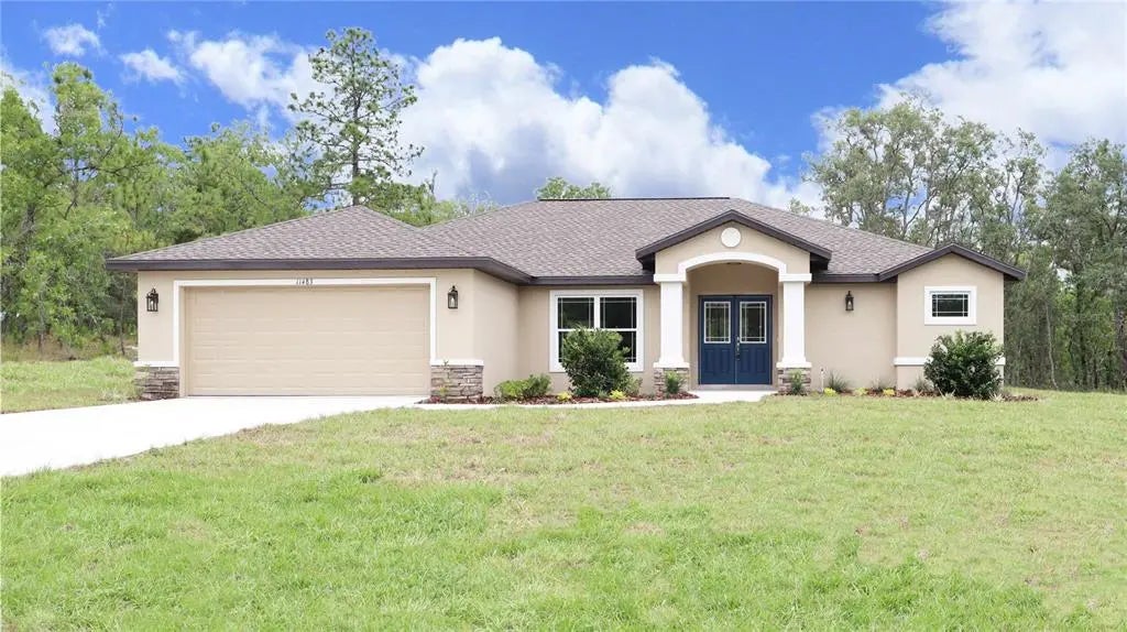 Welcome to this beautifully upgraded Versailles II floor plan by Artistic Homes, where high-end features meet thoughtful design. This spacious new construction offers 10' ceilings throughout the main living areas and showcases elegant finishes like quartz countertops, upgraded shaker cabinets, and tile flooring throughout the common areas. The kitchen is a chef's dream with a large one-level island perfect for seating, stainless steel appliances, staggered cabinetry, and ample workspace. The owner's suite features dual walk-in closets and an oversized walk-in shower. Situated on a generous ½+ acre corner lot with no rear neighbors, this home offers privacy and tranquility, all with paved road access and proximity to Hexam Road and local shopping. Additional highlights include: Passive septic system (no biannual inspections required), fully sodded and landscaped yard with irrigation, pre-wired for a pool, ready for your custom backyard oasis, stone-accented exterior for striking curb appeal, garage door opener and builder?s 1-year warranty from Certificate of Occupancy.