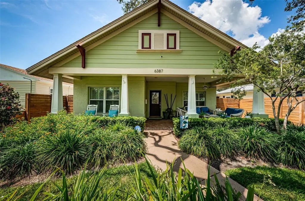 Impeccable Key West Style Pool home built in 2014. Three bedrooms, two baths, 1,595sq.ft of living area and a two car garage. This home is loaded with features and shows like a model. 20ft. soaring vaulted ceilings through out, gorgeous kitchen with granite tops and stainless steel appliances, inside laundry, porcelain tile, front and rear covered porches and so much more. Other features include: NEW roof 2024, new hot water heater 2024, new fencing 2022, new refrigerator and microwave 2024, new pool vacuum, pool filter 2024, new outdoor fans 2024, plantation shutters throughout, double pane windows, and more! Enjoy your privacy in the rear as the pool is fenced in with pavers. There is alley access as well. Front covered porch overlooking lushly landscaped fenced in yard. EXCEPTIONAL overall location and high and dry with no flood insurance required. Minutes to vibrant downtown St. Pete and only minutes to downtown Gulfport with all its restaurants and shops. Also only minutes to the Gulf Beaches and one block away from the Pinellas County Trail. This is truly the home you have been waiting for! Be sure to view the beautiful virtual tour.