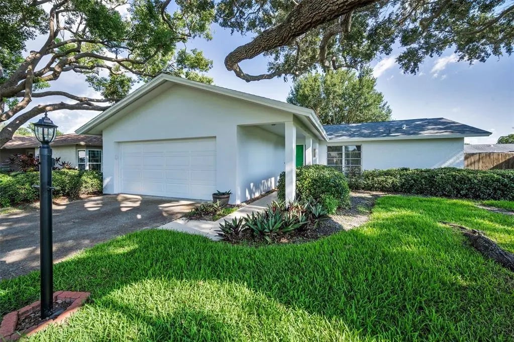 Talk about curb appeal! This well-maintained 2-bedroom, 2-bath, 2-car garage home is located in the highly sought-after Greenbriar neighborhood—just minutes from Dunedin, Countryside, and the Gulf beaches. Featuring a brand new architectural roof (2025), New Ceiling Fans and fresh interior paint (2025), this home offers a light and welcoming feel throughout. Inside, you'll find a spacious open great room and dining area, a galley kitchen with ample cabinet space, pantry, and loads of windows that overlook the mature landscaping. The kitchen is filled with natural light and includes a convenient pass-through window to the 10x24 screened lanai—perfect for relaxing or entertaining. The Primary Suite features a 6x6 walk-in closet, an additional 6x5 built-in vanity/dressing area, and an updated ensuite bathroom with a modern shower and tall vanity with generous counter space. The Guest Bedroom is located at the front of the home, just across from the guest bath, which showcases a charming retro green tiled shower. The oversized 2-car garage includes a washer and dryer, while the fully fenced backyard offers lush landscaping, a peaceful pond, and plenty of space to create your own private oasis. Greenbriar is a well-established community with its own clubhouse, pool, and social events for all ages. Located in a non-evacuation, X flood zone, this home offers comfort, convenience, and classic Florida charm in one of Clearwater’s most desirable areas.