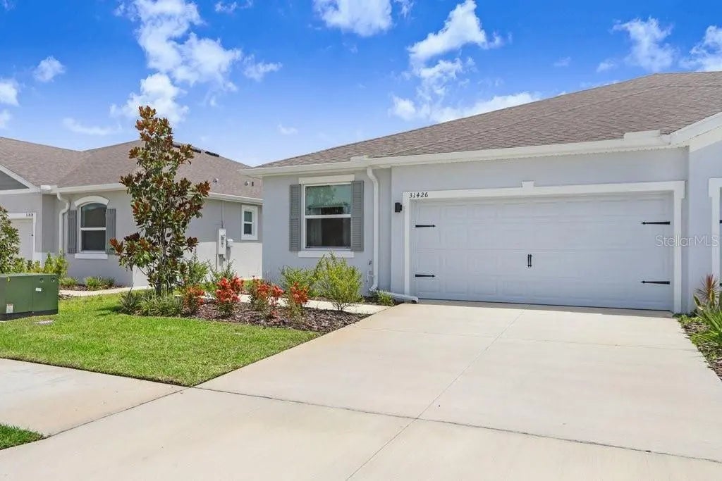 Accepting back up offers! Home qualifies for a $1,500 lender credit when financing with preferred lender! Why wait to build when this home has it all — and more? Welcome to your upgraded oasis in one of Wesley Chapel’s most promising new communities, where this 3-bedroom, 2-bath gem stands out from the rest. With 1,565 square feet of thoughtfully designed living space, this home blends comfort, style, and convenience — all with a builder warranty still in effect. Unlike nearby new builds still under construction, this home is truly move-in ready and packed with upgrades: • Sleek shower doors added to both guest and primary baths • Garage and patio floor epoxy professionally installed for superior durability and aesthetics—this is not a DIY application • Fully screened-in lanai – ideal for Florida evenings • Custom built-in bookshelves in the third bedroom – perfect for an office, library, or creative space • Stylish drawer and cabinet pulls added throughout kitchen and baths for a polished, finished look • Includes all appliances. Brand new refrigerator and washer/dryer – savings and convenience you won’t get with the builder’s standard options • Designer pendant lights in the primary suite for added style • All custom window coverings convey – beautifully tailored and move-in ready • Garage shelving stays for additional organized storage Located just over 1 mile from I-75 and 10 minutes to the Tampa Premium Outlets, this home offers unbeatable convenience in a neighborhood poised for growth. Whether you're a first-time buyer, relocating, or downsizing, this home checks every box — with upgrades and finishes the builder doesn’t include. Better than new, fully equipped, and ready for you. Schedule your private tour today — this one won’t last long.