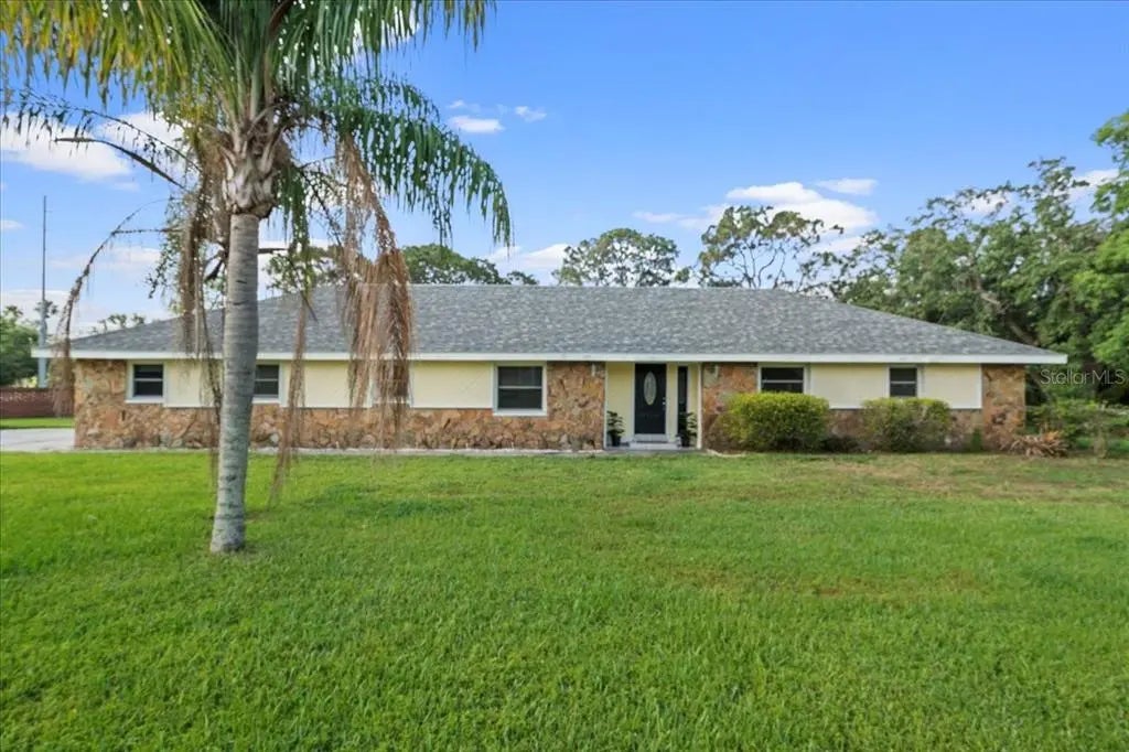 One or more photo(s) has been virtually staged. UTILITIES, LAWN AND POOL CARE INCLUDED IN RENT!! This spacious home features three bedrooms and two bathrooms, making it ideal for families of all sizes. The main house has a shared three car garage plus RV parking and connection on parking pad. The property boasts a beautiful screened lanai, perfect for enjoying Florida's warm weather while being protected from insects. The expansive 38,000-gallon pool and lanai is a true oasis, providing a perfect spot for relaxation and entertainment. This property boast a secondary unit. The main house is separated at the garage entry through an interior foyer and each unit have their own exterior entry door. Pool and yard are shared by both units.For added efficiency, the home is equipped with roof-mounted solar panels installed in 2020, allowing for reduced energy costs. Welcome to an atmosphere with modern amenities and a thoughtful layout, making it a perfect place to call home.