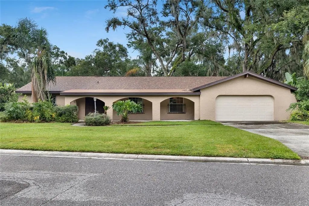 So much potential in one of the most sought-after neighborhoods in Temple Terrace! This solid all-block home sits high and dry in a non-flood zone on an oversized .33-acre lot and offers 3 spacious bedrooms, 2 full baths, a 2-car garage, and 2,355 sq. ft. of living space — all with a brand-new roof in 2024! The split floor plan features a welcoming covered front porch, a formal living room and dining area, and a sprawling main living space with a beautiful brick fireplace as the centerpiece. Sliding doors open to a lush backyard with mature landscaping and a covered patio, perfect for relaxing or entertaining. The kitchen includes a cozy eat-in nook, nicely maintained walnut cabinets, and classic Formica countertops. The primary suite is oversized with walk-in closets and a flow-through double vanity bath, while two large guest bedrooms share a conveniently located full bath. With just a little TLC, this home could truly shine — offering incredible value for both investors and homeowners ready to make it their own. Temple Terrace Estates is a premier golf course community with an unbeatable location just minutes to USF, Florida College, Busch Gardens, major highways, shopping, and dining, plus amenities like an Olympic-size pool, fitness center, water slides, volleyball, pickleball, racquetball, tennis, and more. This is an incredible opportunity to get into one of the best neighborhoods at a great price — don’t let it pass you by!