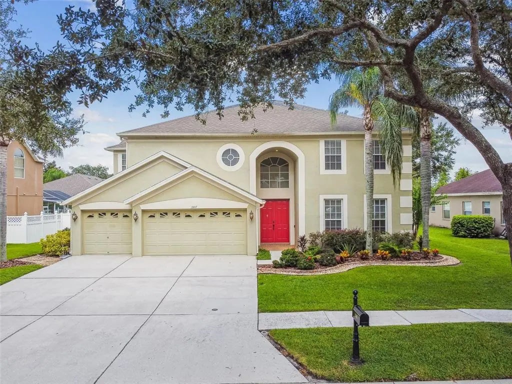 One or more photo(s) has been virtually staged. This beautiful, MOVE-IN ready 5 bedroom, 3 bath, 3 car garage pool home is located in the gated community of West Meadows in Tampa Palms. The spacious Eat-in Kitchen has soft grey cabinetry, windowpane accents, quartz countertops with large island, stainless-steel appliances (including a gas range), crown molding and built ins. Upgrades: New Lighting Fixtures, Interior paint, Remodeled bathrooms w/granite countertops, Water softener, plus much more! Home includes two Living Rooms that are very spacious to create an open floor plan w/tile throughout. Two sets of sliding glass doors that lead you out to large screened in lanai, saltwater pool w/pebble finish and waterfall. A bedroom (which can be used as an office or guest room) is located off of the main living room and a full bathroom with a standalone shower w/a door that walks out to the pool area. Upstairs is the Owner's Suite that features crown molding, a large sitting area, claw foot bathtub, frameless glass shower & very spacious walk-in closet. The 2nd floor also features bedrooms 2 and 3, a full bathroom, granite countertops, dual sinks, shower/tub combo and a large media room (can be used as bedroom 5). The 3 car Garage has an epoxy floor finish, new painted walls and ample shelving for additional storage. Roof (2017), A/C (2021) and Hot Water Heater (2010). Situated on 1/4 acres, custom saltwater pool and fully fenced in back yard makes this home perfect for entertaining. Low HOA which includes: 2 community pools, splash pad, fitness center, playground, club house and tennis/basketball/sand volleyball courts, soccer field & baseball diamond. Conveniently located near I-75, I-275, The Tampa Premium Outlet Mall plus A rated schools and hospitals. Schedule your private showing today!