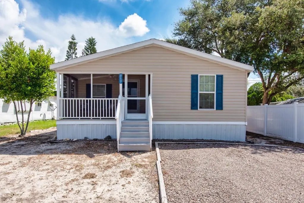 Affordable comfort in a prime location! This well-kept 2-bedroom, 2-bath manufactured home offers comfort, convenience, and plenty of space for everyday living. Built in 2016 on a lot hand-selected by the original owner, the home features 976 sq. ft. with a thoughtful split floor plan. A screened front porch with a ceiling fan invites you to relax, while vinyl flooring flows throughout for a clean, easy-care look. The kitchen is fitted with timeless white appliances and ample storage, making meal prep simple and enjoyable. Smart updates include a 2023 AC system and the original 2016 shingle roof. The entire base of the home is wrapped in protective wire, adding long-lasting durability. Parking is never an issue here—with plenty of space on the property and a low HOA fee to keep monthly costs in check. For those with an adventurous side, the community also offers a designated area for RV, boat, or trailer storage at a yearly rate of $300 to park in the small lot or $500 a year for the larger lot —ideal for those who love to explore. Best of all, the home is in Flood Zone X, giving you added peace of mind. Conveniently located near US-19 and just steps from the Pinellas Trail, you’ll enjoy quick access to shopping, dining, and the outdoor Florida lifestyle.