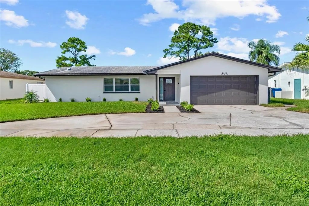 Modern Pool Home – Fully Updated & Move-In Ready! This beautifully renovated 4-bedroom, 2-bath residence offers an open floor plan with a brand new kitchen featuring quartz countertops, new stainless steel appliances, and modern cabinetry, along with fully remodeled bathrooms. Fresh interior and exterior paint, waterproof pet-friendly flooring, new doors, impact windows and sliding doors, updated lighting, and fixtures provide a stylish and functional upgrade throughout. Outdoors, enjoy a sparkling screened-in pool, landscaped yard with full sprinkler system, and attached two-car garage. Conveniently located near shopping, dining, and stunning beaches—move-in ready and a must-see!