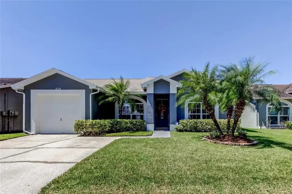 FANTASTIC UPDATED PROPERTY. Numerous updates and features in this charming home with three bedrooms and two baths, 1 car garage pool home. As you enter the open floor plan you notice the modern and welcoming ambiance with impeccable updates. Some of the features include brand new roof, fully ceramic tiled flooring in kitchen, dining room/family room/living room, very nice upgraded kitchen with granite countertops, new modern style cabinets with plenty of storage, upgraded sink with quality fixtures, brand new fridge and newer appliances. Primary bedroom with carpet and ample closet space, custom blinds & ceiling fan. The primary bathroom is nicely updated and appointed with pedestal sink, upgraded lighting, glass enclosed shower with modern decorative touches. 2 secondary bedrooms with plush carpet and large closets & ceiling fans. The guest bathroom boasts tub & shower, upgraded pedestal sink, decorative wallpaper, lighting, mirror & fixtures. Out the French doors to the covered lanai is the sparkling caged 11,000 gallon chlorine pool & spacious private fenced in back yard. Some of the other features include sprinkler system, upgraded landscaping, freshly painted exterior, AC 4 years old, hurricane shutters, child safety pool fence. Convenient location with easy access to Tampa International Airport and downtown Tampa this property is in a non-flood zone, low annual HOA fee and no CDD . Close proximity to shops, restaurants, Citrus Park Mall, Upper Tampa Bay Trail, and major expressways. Great opportunity for 1st time homebuyers.