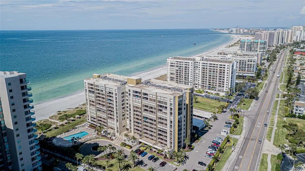 HUGH PRICE REDUCTION NEW PRICE !!!! SOUTH BEACH IV CONDO JUST REDUCED! Priced to Sell! Renovated 2/2 4th floor comes furnished, this desirable corner unit has wrap around balconies boasting spectacular views of the intracoastal waters and Gulf of Mexico. ALL MILESTONE STUDIES AND INSPECTIONS HAVE BEEN COMPLETE. BUILDING IS SOUND AND PASSED ALL INSPECTIONS. Enjoy the morning sunrise views and picturesque night lights from your living room. This sunny & bright condominium was well constructed by (US Steel) in 1982. This condo boasts hardwood flooring throughout with carpet in the bedrooms. The tastefully renovated kitchen has solid wood custom cabinetry, new recessed celling lighting, granite countertops, kitchen bar, with a built in desk overlooking the intracoastal. Both bedrooms have been freshly painted, the ceilings have been upgraded, popcorn removed and a knockdown finish applied.A/C unit is 6 years old. Both bedrooms have sliding glass doors out to the expanded balcony with ocean views. The masterbath and guest bathrooms feature custom cabinetry, granite counters, designer tile with a stand alone shower in guest and soaking tub in master. There is assigned cover parking with plenty of extra guest parking. This condo has a storage locker under the building perfect for your beach chairs and accessories. South Beach IV is a well managed community with 24/7 gated guard house, onsite property manager, and a maintenance staff. Amenities include: secure access to the building with personal fob entry. Planning a social event! Enjoy the spacious community room with a full kitchen and an extended terrace overlooking the large heated thermal pool. Adjacent to the pool is the Tiki pavilion with individual tiki huts and bbq grills all situated along side miles of sugary sand beaches of Sand Key! There is a trolly that runs every 30 mins to restaurants and shopping of your choice on Sand Key. Take the trolly as far North as Dunedin or South to St. Pete beach. Clearwater/St Pete and Tampa airport is 35-45 mins away. This is truly Beach Living At It's Finest!