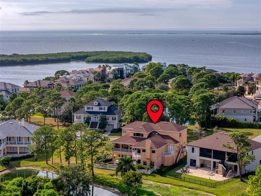 One or more photo(s) has been virtually staged. Discover this rare opportunity in the exclusive, guard-gated Harbour Watch community, where 2066 N Pointe Alexis Drive in Tarpon Springs is situated on a 90-acre peninsula bordered by the Gulf of Mexico and Anclote River. This spacious estate offers more than 5,100 square feet of living space, complemented by a 6+ car garage and ample storage—all at $259 per square foot. Designed for multigenerational living, this home features four private ensuite bedrooms, including a suite with its own private living room area. A dramatic two-story foyer welcomes you with 25-foot coffered and tray ceilings, a full wet bar, and floor-to-ceiling windows showcasing serene views of the private pool, tranquil pond, and natural estuary. Built with elevated structural integrity, this residence was constructed one foot above the previous V-flood zone requirement and reinforced with 54 pilings driven 35 feet deep, as well as block and concrete breakaway walls. It is now located in an AE flood zone A private elevator provides seamless access to every level, including a two-story office/library with built-in bookcases, a dedicated media room with a wet bar, and a gourmet kitchen with a built-in desk, breakfast area, and fireplace-warmed family room. The owner’s retreat is a sanctuary, featuring two walk-in closets, a private lounge area, and a Gulf-view balcony. Expansive outdoor living areas include a spacious balcony with an outdoor kitchen, perfect for enjoying the picturesque natural surroundings. Residents of Harbour Watch enjoy resort-style amenities, including a junior Olympic-sized pool and heated spa, lighted tennis courts, a Gulf-front gazebo and fishing pier, a clubhouse, and a playground. Conveniently located near historic Tarpon Springs, the world-famous sponge docks, two local beaches, and premier medical and lifestyle amenities.