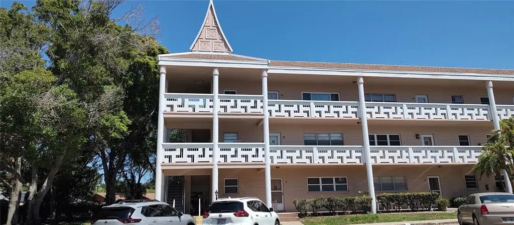 Welcome home to your beautifully updated top floor END unit overlooking beautiful mature trees! This Emerald model allows for easy kitchen access at the front of the home, a kitchen window, and an expansive pantry closet with 6-panel doors. This home has been tastefully and extensively upgraded with a 2019 kitchen with dove gray shaker soft close cabinetry, granite counters, and mother of pearl tile backsplash, open concept with a breakfast bar with pendant lighting, and 2019 slate appliances. Newer windows with an extra large side window to brighten and enhance the soft hued walls. The master bathroom has been fully renovated with a sleek modern BathFitters walk-in shower with glass doors, new vanity and fixtures, and newer Kohler toilet. The 2nd bath has been partially updated with newer tile floor, Kohler toilet, and new faucet and new vanity handles, and new faucets in tub. 2023 roof (HOA), 2022 electric panel, 2021 air conditioner, brand new 2024 hot water heater. Living room and guest bedroom furniture is included. This home has a large front porch area, which is a common area. Owner has a 4-pt inspection from Feb 2024 available. On Top of the World is a 55+ community boasting extensive amenities including 2 golf courses, 2 pools, tennis, pickleball and shuffleboard courts, fitness center, onsite cafe (snacks), dog park, dozens of clubs, frequent shows and dances.