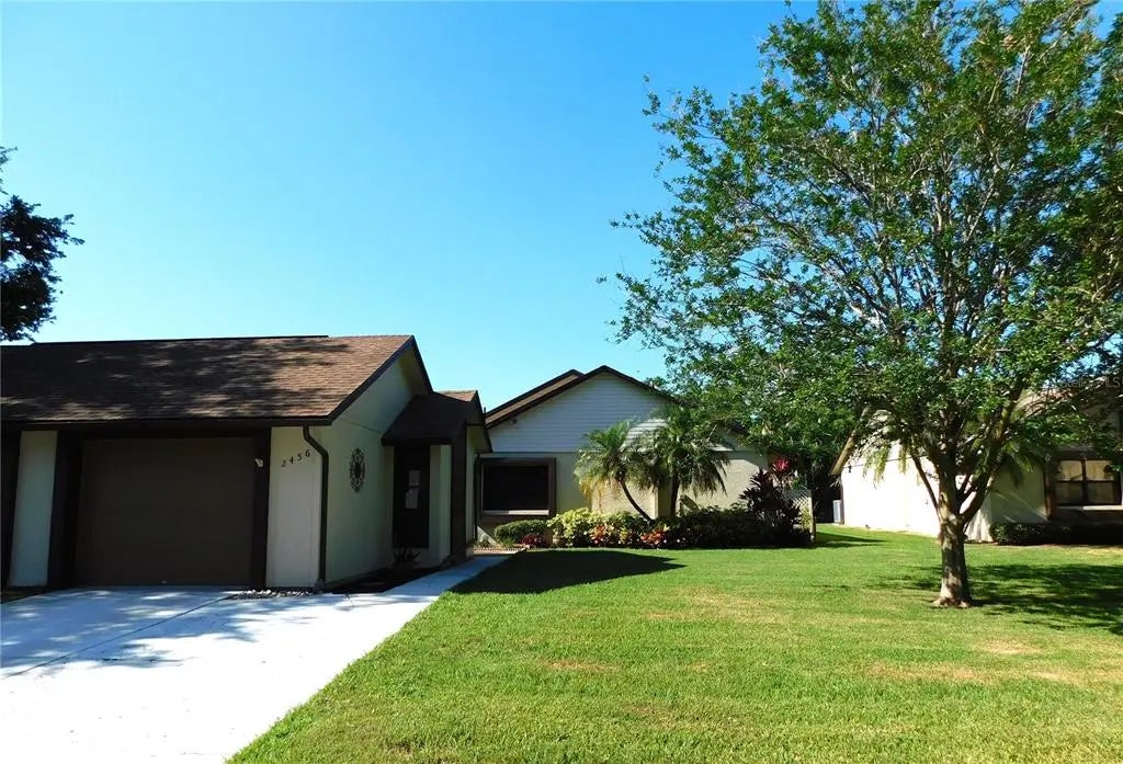 SELLER SAYS SELL! HUGE PRICE REDUCTION - Nestled away in desirable Village On The Green awaits this spacious, 2 bedroom, 2 bathroom, 1 car garage patio home with a new roof! An open and bright kitchen with 2 windows is the ideal place to cook your favorite dishes. The great room is open to a Florida room, making it the perfect place to entertain or relax and unwind. Some of the many fine features this home has to offer are: split bedroom plan, enclosed Florida room, new electrical panel, NEW ROOF ON MAIN HOUSE (5/24), A/C 2022, paved entry, and extra parking pad. Village On The Green is a 55+ community. The active Clubhouse has so much to offer with a library room, exercise area, kitchen, gathering room and shuffleboard making it the perfect place to meet your neighbors or just relax in the solar heated pool looking out to the tranquil lake. Centrally located to many amenities and delicious dining options, Clearwater/Westfield mall, quaint downtown Dunedin, Honeymoon Island and beautiful Clearwater Beach. Low monthly fees include lawn cutting, lawn watering and fertilizing, basic cable, internet and clubhouse. Located in a NON-FLOOD zone! Hurry schedule your showing today.