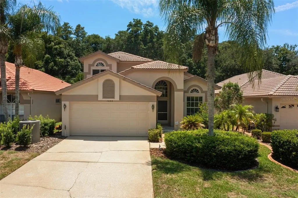PRICE REDUCTION. Prestigious Crescent Oaks Country Club. Enjoy country club living along with the bonus of HOA-provided exterior maintenance in the upscale enclave called Coventry. You can enjoy your time on the screened lanai or in the HEATED IN GROUND SPA watching the deer, wild turkeys and other birds and wildlife in their natural habitat. Your private back yard extends deep into a lush conservation area. Across the street is the golf course. No visible neighbors front or back. Spacious rooms and high ceilings make for an open floorplan with the primary bedroom on the ground level. Two more bedrooms are on the second floor. A den/office on the ground floor could be used as a fourth bedroom. This home is sold FURNISHED WITH EVERYTHING YOU SEE, making it a a great option as a second home or an easy choice to live the country club lifestyle full-time. When you are not relaxing on the lanai you can take advantage of these amenities: partial or full golf membership, social membership, pickleball, tennis and dining at the club restaurant. Or you can venture out to enjoy beaches, county parks, entertainment venues, shopping, airports, fishing adventures and cruise ports all within a convenient distance to your golfing paradise. The home has only had one owner who used it sparingly as a vacation home. It been thoughtfully priced to allow for your updates and personal touches. The recent price reduction makes it even easier to make the upgrades that you may envision. This property is still the LOWEST PRICE PER SQUARE FOOT IN CRESCENT OAKS. Compare the price, size and value and you will want to schedule your showing appointment without delay.