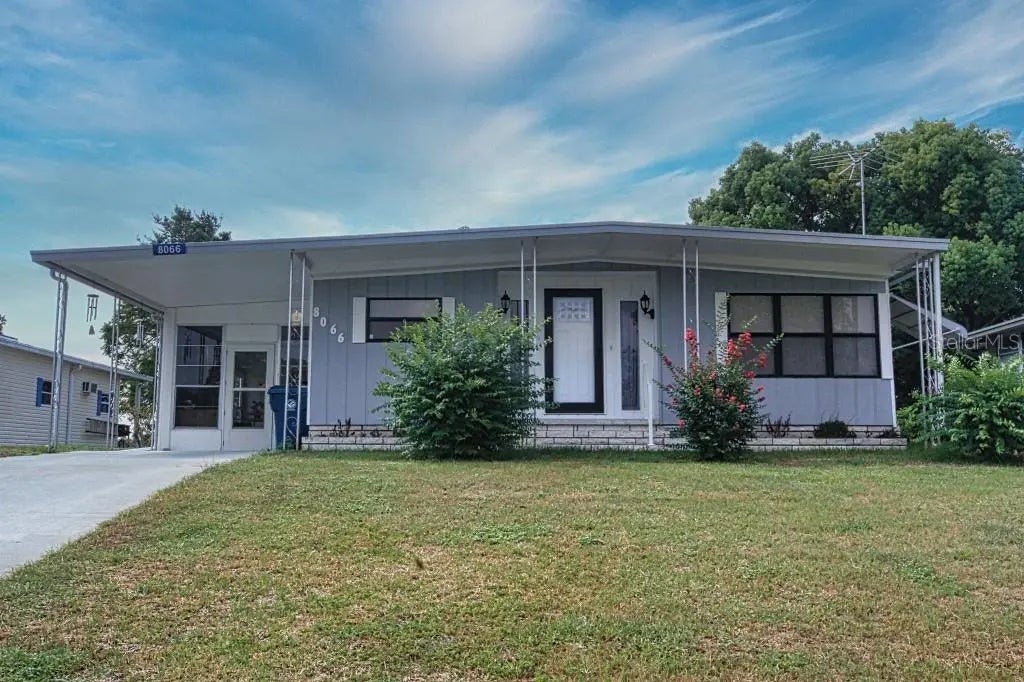 Seller is motivated--bring all offers!! BRAND NEW ROOF with warranty and new aluminum siding make this updated open home with laminate floors, modern trim, and light colors a winner! This 2 bedroom 2 bathroom golf course home with updated baths and plenty of room for your furnishings is move-in ready! This home has generous closets in both bedrooms and great natural lighting. It has a golf cart garage too. Best of all, you own the land with low HOA fees, including a community pool, social clubs, golf, and much more. Plus, all furnishings and decor in the pictures convey!
