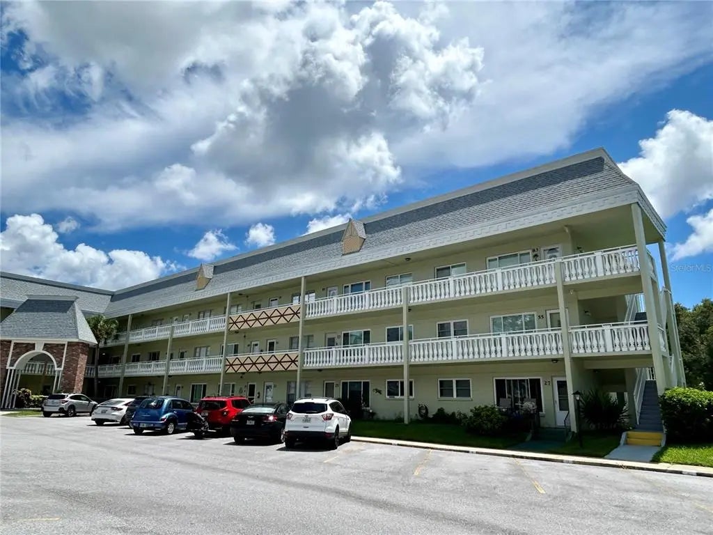 Welcome to this conveniently located third-floor condo, just one block from the East Activity Center! Enjoy easy access to a variety of amenities, including one of two swimming pools, a fitness center, tennis and pickleball courts, and more in this vibrant, interactive community. Step inside this freshly painted unit to find a bright and updated living space. Newly installed luxury vinyl plank flooring extends through the living room, kitchen, bedroom and Florida Room. Enjoy the versatility of the spacious Florida Room, and the bathroom includes a convenient step in shower. For your comfort, the HVAC system was replaced in 2017, and ceiling fans in all the main rooms help keep you cool. The 55+ community has two activity centers, and two private golf courses with 9 and 18 holes, free exclusively for resident owners. There are two heated swimming pools. The remodeled Cardio Gym has the latest exercise equipment. A very pet-friendly community, there is a fenced dog park with covered seating. There are hobby studios, and a wood shop for the exclusive use of the residents. Activities include fitness classes, dancing, clubs, cards, billiards, entertainment, classes, and much more. The on-site Good Karma Café has take & bake meals and snacks. Close to beaches, transportation, shopping, entertainment, and fine dining. All room sizes, floor plans and square footage are approximate. This property is being transferred by a leasehold estate deed. Association approval is required. If financing, a 35% down payment is required. This unit combines modern convenience with a prime location in a community rich with activities and amenities. Schedule a showing today and experience comfortable and convenient living at its finest!