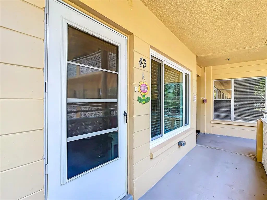 On Top of The World - This 1100 sq ft 2 bedroom, 2 bath second-floor center unit is conveniently located near the East Community Center and OVERLOOKS THE GOLF COURSE! Florida living at its finest! Enter to the spacious and open living room/dining room combo with new luxury vinyl plank flooring, neutral colors and fresh paint throughout. Recent updates include...NEW IMPACT RESISTANT WINDOWS - 2023. NEW WATER HEATER - 2024. The kitchen is light and bright with beautiful white cabinets with soft close hardware, quartz countertops, stainless appliances, custom tile backsplash and luxury vinyl plank flooring. The Florida room has a wall of windows to let in the natural light and a convenient 2nd exit out to the central hallway and elevator. The master bedroom has an x-large double closet with an association APPROVED FULL-SIZED WASHER AND DRYER all-in-one unit, new luxury vinyl flooring, and an updated private bathroom complete with a vanity with quartz top, and a walk-in shower with custom tile. Open the barn door to allow easy access to the family room or secure it for privacy. The second bedroom has a large closet and new luxury vinyl plank flooring with the updated guest bath right down the hall. Assigned parking space in front of the unit. The 55+ community has two activity centers, and two private golf courses with 9 and 18 holes, free exclusively for resident owners. There are two swimming pools; one is heated. The remodeled Cardio Gym has the latest exercise equipment. A very pet-friendly community, there is a fenced dog park with covered seating. There are hobby studios and a woodshop for the exclusive use of the residents. Activities include fitness classes, dancing, clubs, cards, billiards, entertainment, classes, and much more. The on-site Good Karma Café has snacks and take-n-bake meals. The OTOTW community has free bus service as well as additional transportation options available including wheelchair service. A variety of medical resources are located nearby. Close to shopping, restaurants, and entertainment. Come take a look at this beautifully updated condo …You’ll Like what you see!