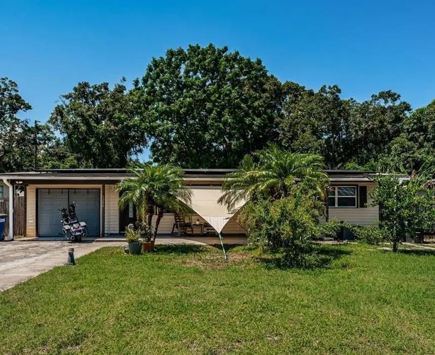 Wow! This lovely 3 bedroom home with 1.5 baths offers lots of updates and upgrades including stainless steel appliances in the kitchen and beautiful wood flooring throughout living area! Stay cool year round with ceiling fans in every room along with central heat and air. The half bath in garage is air conditioned! HVAC 2016! The washer and dryer convey! EXTRA BONUS- There are Solar Panels (only 2 years old) that cost over $65,000 and are paid off adding energy efficiency and low power bills! Relax on the front porch or make the large backyard your personal oasis with plenty of room for a pool, deck or spa..... just imagine the possibilities. There are also 2 storage sheds (there is an above ground pool in one of the sheds which stays but is not warranted). The front yard has 2 driveways with plenty of room to park vehicles, boats or RV etc. If you like to golf there are 2 golf courses close by along with the beautiful lake Lucille. This home is conveniently located to airports and less than 30 minutes to Clearwater Beach. Also in unincorporated Clearwater and may qualify for Pinellas County down payment assistance up to 75K (check with your lender). Flood Insurance not currently required! The owner is motivated! A must see!