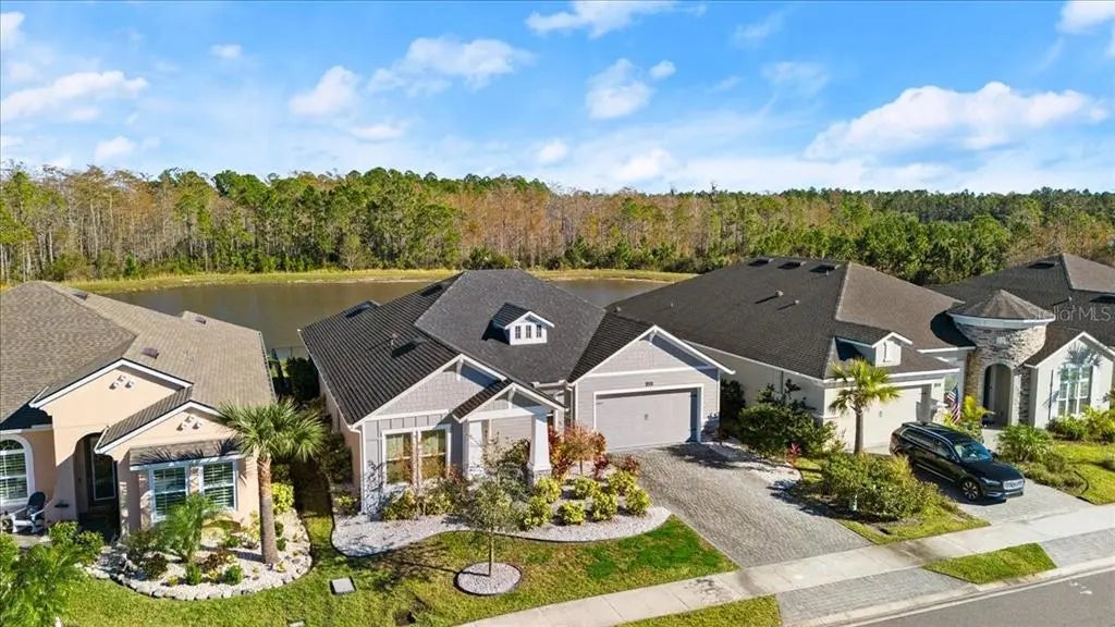 WATERFRONT! WALKABLE TO COMMUNITY POOLS! This 3/2 + office has lake views and no backyard neighbors. If you are looking for a perfectly priced, newer concrete block home in a close-knit community neighborhood, this one is for you. This 2020 Juliette model is adorned with upgrades inside & out and will surely be missed by these original owners. The front of the home has great curb appeal with a paver driveway, paver walkup, and covered front porch. The back of the home is an absolute dream with extended covered lanai, fully fenced yard, and views of the lake and conservation area where you'll see wildlife out & about almost every night! Upon entering the foyer you'll find volume ceilings, recessed lighting, and luxury vinyl plank flooring throughout this 2,000sf home. Dedicated office to your right with custom shiplap accent wall & sliding barn doors, and to your left are your two ample sized guest bedrooms and full guest bathroom. The living room, kitchen and dining rooms are in the center of the home and all offer gorgeous views of the lake. The living room has tray ceilings with shiplap accent and a triple sliding glass door with electric sunshades leading out to the covered lanai. The kitchen is quite impressive with quartz countertops, full height tile backsplash, GE appliances, double oven, built-in drawer microwave, large food pantry with custom shelving, and roller drawers in lower cabinetry. The floor plan is great for privacy with split bedrooms - primary in the rear overlooking the lake and guests/office in the front. The 17x13 primary bedroom has plenty of room for two and a HUGE primary bath with separate his-n-hers vanities/sinks, walk-in tile shower with frameless glass enclosure, separate water closet, and walk-in clothes closet with added storage shelving. Mosaic is an extremely popular, close-knit community that was master planned with an abundance of social spaces for gathering and connection. Amenities include: All ages pool, adults-only pool, fitness center, club room (private events allowed), community park, outdoor amphitheater (karaoke nights!), fire pit, children's playground, community WiFi in all common areas, stocked fishing lake, event lawn, and regularly scheduled events through Mosaic's lifestyle director, Caroline! All this for an HOA fee of only 120/month. Mosaic has it all - the home, the community, and the lifestyle. All information and room sizes in this listing are intended to be accurate but cannot be guaranteed. Buyers/agent to perform due diligence.