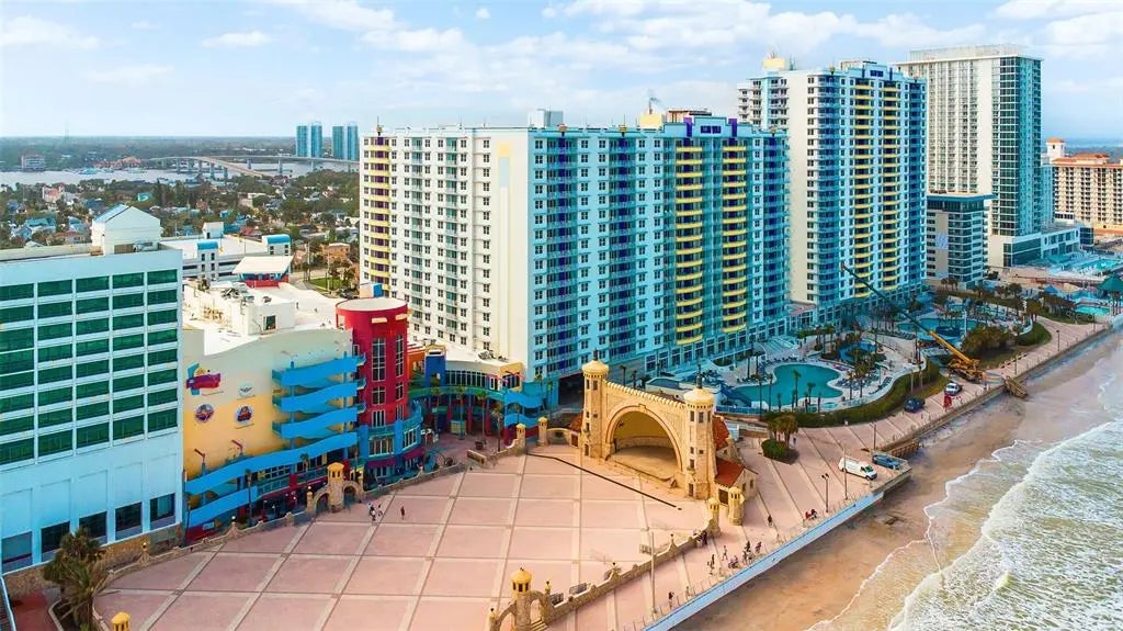 Live like you're on vacation or generate income with this stunning 2-bedroom, 2-bathroom condominium in the highly sought-after Ocean Walk Resort, perfectly located in the heart of Daytona Beach. This bright and spacious unit offers an inviting layout and comfortably accommodates up to eight guests, making it ideal for family vacations, entertaining friends, or a lucrative rental opportunity. Recently updated with luxury vinyl plank flooring throughout, this FULLY FURNISHED unit is move-in ready and boasts breathtaking oceanfront views from almost every room. Designed for luxurious living, the home features a formal dining space, ample storage, and a serene master retreat with a walk-in shower, jacuzzi tub, and in-unit washer and dryer for ultimate convenience. Resort-style amenities elevate the experience, including multiple oceanfront pools, lazy river, hot tubs, a kids' splash area, a state-of-the-art fitness center, mini-golf, an arcade, and direct beach access. Dining and entertainment are steps away at Ocean Walk Shoppes, where you'll find favorites like Bubba Gump Shrimp Co. and Sloppy Joe's, a movie theater, and boutique shopping. Secure private parking and proximity to the Boardwalk, Ocean Center, and vibrant Seabreeze clubs further enhance the appeal of this property. With direct access to the Daytona Beach pier and the World's Most Famous Beach, this condominium offers the ultimate combination of comfort, luxury, and convenience. Whether you're looking for a personal vacation haven or a high-performing investment property, this is your chance to own a piece of paradise on Daytona Beach's iconic shoreline. All information taken from the tax record, and while deemed reliable, cannot be guaranteed.