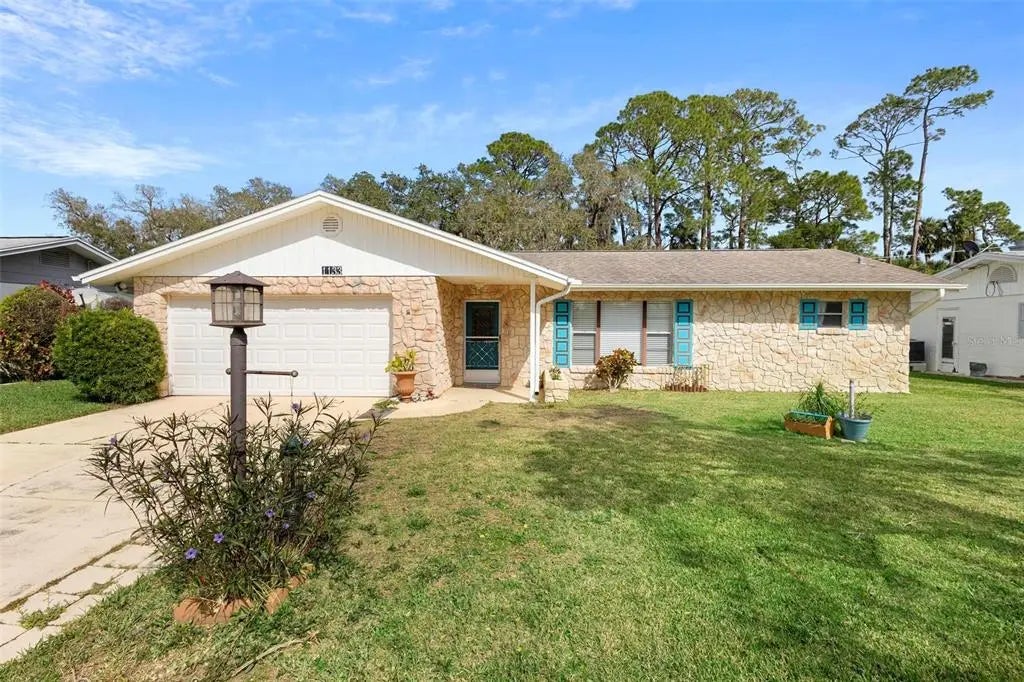 This artist’s oasis in the heart of Daytona Beach offers the perfect blend of modern updates and mid-century charm, all set against peaceful golf course views—without the constraints of an HOA! The stunning tuxedo kitchen boasts all-new appliances, cabinetry, flooring, lighting, and a moveable island, seamlessly connecting to the open split-floor plan, the roof is 2009, water heater 2015, and AC age unknown. The spacious living room leads to a bright Florida room, while the owner’s suite features a sunny private patio, a beautifully updated bathroom with a unique walk-in shower, and ample closet space. On the other side, the inviting dining/family room exudes warmth with built-in shelving, a fireplace, and rich color, while the second bedroom and bath offer light-filled comfort with a pocket door for added privacy. Just minutes from the beach, this home is a rare find, offering artistic flair, modern convenience, and a prime location!