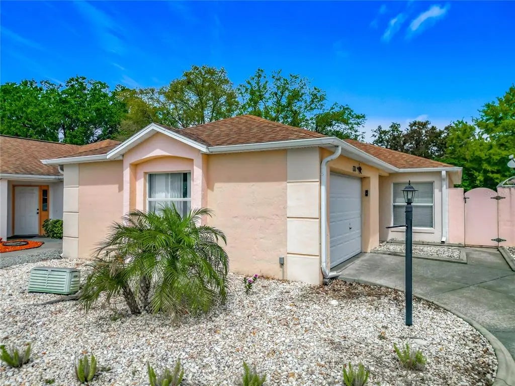 This beautifully maintained 2-bedroom, 2-bathroom Baja-style courtyard villa in the Village of De La Vista South is move-in ready and being sold TURN-KEY—just pack your clothes and toothbrush! Built with concrete block and stucco, this low-maintenance home has no carpet and no grass, making upkeep a breeze. Enjoy Florida living at its finest with a screened lanai and a fully fenced courtyard made of concrete, perfect for privacy and relaxation. As an added bonus, this home INCLUDES A GOLF CART (4 seater), so you can explore and enjoy the lifestyle immediately! CDD BOND PAID! Roof, HVAC, and Water Heater were all replaced in 2014. Situated between LAKE SUMTER LANDING and SPANISH SPRINGS, this villa is also just minutes from Hacienda Hills Golf & Country Club, Tierra Del Sol Golf & Country Club, La Hacienda Regional Recreation Center, Chula Vista Recreation Center, Rio Grande Family Pool, and the US Hwy 441 Medical & Commercial Corridor. Shopping, golfing, dining, trail riding and medical facilities are all nearby. Don't miss this rare opportunity to own a fully furnished, move-in ready villa in one of the most desirable locations in The Villages. Schedule your private showing today!