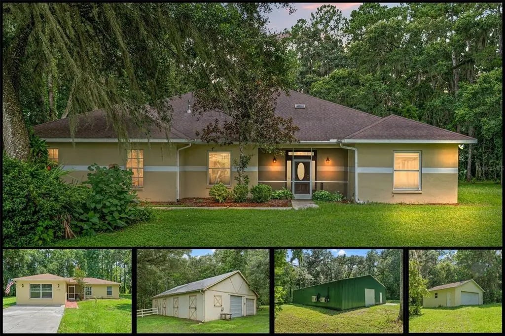 One or more photo(s) has been virtually staged. BROOKSVILLE, FLORIDA ESTATE PROPERTY ON 10 ACRES ZONED AGRICULTURAL with a 4 bedroom MAIN HOME, 2 bedroom GUEST HOME, 3 stall BARN with tack room, 2 car DETACHED GARAGE, and a 40' x 60' METAL BUILDING fully insulated with AC AND POND. Welcome to your private estate nestled on 10 acres of serene agricultural land in beautiful Brooksville, Florida. As you drive down the long gated driveway, you'll feel a sense of peace and privacy like no other. Your first stop is the charming 2-bedroom, 2-bathroom GUEST HOME, boasting 1,400 square feet of comfortable living space. Imagine sipping your morning coffee on the screen-enclosed lanai, overlooking the tranquil pond—a perfect spot to start your day. Just beyond the guest house lies the heart of the estate: THE MAIN HOME. With 4 bedroom and 2 ½ bathroom plus a 2 car attached garage, this home has room for everyone. The massive primary suite is a true retreat, featuring a garden tub, a walk-in shower, and a walk-in closet so large it could double as a small room! The kitchen is a cook's delight with upgraded white cabinets and stunning granite countertops. Gather around the cozy fireplace in the family room or relax in the sunroom that opens up to a large paver patio complete with a private greenhouse—ideal for your gardening adventures. But that's not all! The main home also includes a gym area, two guest bedrooms sharing a full bathroom, and another bedroom toward the rear with its own half bath. Whether you need space for family, guests, or hobbies, this home has it all. Step outside, and you'll find THREE IMPRESSIVE OUTBUILDINGS that open up a world of possibilities. The first is a 2,400-SQUARE FOOT BARN with water and electricity, air-conditioned tack rooms, and three spacious stalls. The second is a 720-square-foot DETACHED GARAGE, also with electricity. And the third? A spectacular 2,400-SQUARE FOOT METAL BUILDING building that's fully insulated, equipped with six mini-split AC units, and features over 45 220-amp outlets—perfect for any project or business venture you can imagine. The estate also features a chicken coop, a FULLY IRRIGATED FRONT PASTURE, property is FULLY FENCED and has three walking or biking trails around the property. CABLE AND HIGH SPEED INTERNET AVAILABLE THROUGH SPECTRUM! With three separate electric meters for the different buildings and a commercial gas tank for the generator, this estate is as functional as it is beautiful. Located in Brooksville, Florida, you're close to the Brooksville-Tampa Bay Regional Airport, making travel a breeze. Brooksville itself is a charming town with rich history, lovely parks, and a welcoming community feel. Whether you're looking for a peaceful retreat or a place with plenty of space to spread out, this property has it all. Don't miss your chance to own this one-of-a-kind estate—call today to schedule your private tour!! BROOKSVILLE, FLORIDA