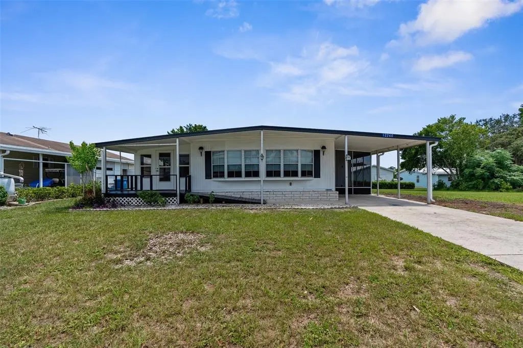 Light, bright and open 2 Bedroom 2 Full Bathroom PLUS multi-purpose room/den/office home Move in ready with Bamboo hardwood flooring & new vinyl throughout.....NO CARPETS! New countertops, freshly painted and ready for you. Large enclosed porch for that extra den, office or bedroom. Extended utility room with extra storage and washer/dryer hookups. Located in an active 55+ golf community where you OWN YOUR LAND ! FHA, VA, Conventional financing are welcomed!
