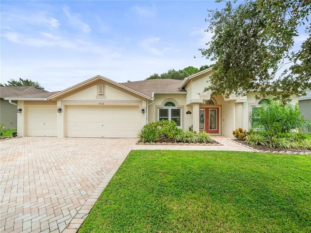 Beautiful, spacious and stunning 3,081 SF., 5 bedroom and 3 full bathroom home features a beautiful golf course homesite view, two wonderful living areas, bonus/craft room or office, three car garage with a paver driveway. The ambiance of this home begins when you enter through the gorgeous double door entry and continues throughout. This home is located in the sought after community of Lake Bernadette and it is located directly on the Lake Bernadette Links Golf Course. It showcases a lovely interior, fabulous floorplan and an outstanding tropical and wooded rear yard with a gorgeous view of the golf course, while still maintaining privacy with the plantings and trees. The floorplan offers two en-suite bedrooms plus three more bedrooms to accommodate large families, family gatherings and holiday times together or multi-generational living. You'll love the open and airy flow and the separation of all bedroom areas. The master en-suite has an additional spacious seating or reading area overlooking the golf course for those quiet moments. The master bathroom has a large shower and a separate soaking tub. You'll love the tile floors throughout and how well this home has been maintained. Best of all and making it such a great purchase and opportunity, the entire home had NEW WINDOWS INSTALLED in 2019 with low-E, double pane, double hung for ease of cleaning, magic glass windows with vinyl frames installed at the sellers cost of almost $31,000. There is a transferable lifetime warranty on the windows that the seller will provide for additional peace of mind. The home also has full steel hurricane shutters. The hot water heater was replaced in 2019 also with an A.O. Smith unit. Plus, Plus...the seller is having the ROOF REPLACED within the next 30 days or before closing allowing for total peace of mind for the new homeowner. Lake Bernadette has a very low HOA fee of only $44.00 monthly that includes wonderful community amenities. The amenities include two pools, a clubhouse, fitness center, walking trails, playground, pickleball, tennis and basketball courts. There is something for everyone! The location is superb and has easy access to nearby shopping, restaurants and medical. Don't miss your opportunity to live in this superb home with new windows, new roof, golf course view and room for everyone! It's truly Florida Lifestyle Living at its Finest.