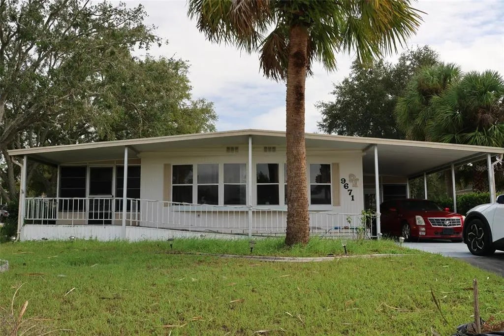 This exceptional 2-bedroom, 2-bathroom residence with carport on an expansive corner lot, offering unparalleled privacy with no rear or north-side neighbors. The spacious great room features glass sliders leading to a generous enclosed porch, while the kitchen seamlessly connects to the dining area. The owner's suite showcases a private bathroom, 2 closets, and glass sliders opening to the serene backyard garden. Additional highlights include a carport, screened porch, laundry room, and an expansive shed. The fenced yard provides a tranquil setting, complemented by community amenities such as a clubhouse with pool, bocce ball, shuffleboard, horseshoes, tennis and pickle ball courts. Residents can enjoy activities like bingo and Mahjong, plus optional membership to the private golf course, perfect for golf cart enthusiasts. Get yourself a Golf cart and join all the fun! Roof 2017, AC 2019