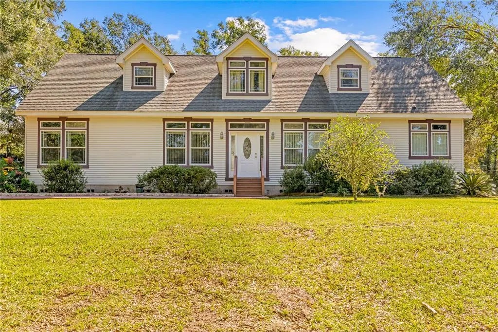 *MUST SEE THIS COUNTRY BEAUTY on 5 ACRES* This beautiful two-story Palm Harbor modular home offers the perfect blend of country charm and modern convenience. Ready for you to move in, this spacious home provides an impressive 2,944 square feet of living space, boasting five bedrooms and two bathrooms designed for comfort and style. The downstairs area is a haven of relaxation and entertainment, featuring a great room design with two expansive living areas, perfect for family gatherings or cozy nights in. The open custom kitchen is a culinary enthusiast's dream, equipped with a breakfast bar, all essential appliances, abundant cabinetry, a full tile backsplash, and a spacious pantry. A wine cooler server area adds a touch of elegance to your dining experience. The master bedroom is a luxurious retreat with a massive en-suite bathroom featuring dual sinks, a jetted tub, a separate shower with dual shower heads, and a private commode room. Each of the three downstairs bedrooms offers walk-in closets, ensuring ample storage space. Additionally, a large laundry room with a washer, dryer, and laundry tub, along with a guest bathroom featuring a tub/shower combo, enhances the home's functionality. Upstairs, discover two generous bedrooms and a versatile living area perfect for an office, craft room, or TV room. An additional room is already plumbed and ready for a full bathroom installation, adding further potential to this magnificent home. The property boasts impressive features such as 8-foot doors and two A/C systems to ensure your comfort year-round. Step outside to find a heated 16x8 swim spa, a 24x12 pavilion with a paver pad, and a 16x16 wood deck, all set against beautifully landscaped grounds highlighted by a decorative stone wall. The property also includes a shed with electric service and a second meter, offering additional utility and storage options. Fully fenced, these 5 acres provide a safe and private environment for you and your loved ones. Enjoy the tranquility of country living without sacrificing modern conveniences, thanks to high-speed internet access through Spectrum. Located just a few miles from shopping, dining, and outdoor activities like boating and fishing on the Withlacoochee River, as well as biking and walking the Rails to Trails, this home offers the best of both worlds. With easy access to I-75, commuting to Tampa is a breeze. This property is more than just a home; it's a lifestyle awaiting your arrival.