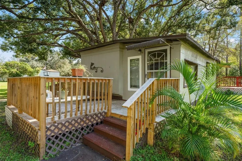 Your Brooksville Escape! Discover this charming 4-bedrooms, 1-bathroom mobile home nestled on a spacious 0.67-acre property in tranquil Brooksville. This home is perfect for owner-occupants, a secluded getaway, or as an investment opportunity. The fully fenced lot, with a double-gate driveway, provides privacy and plenty of space for your toys or projects. Step inside to an open floor plan featuring a combined kitchen, dining, and living area. Two cozy porches—front and back—offer ideal spots to unwind. The rear entrance leads to a versatile sunroom or laundry room. While the home includes new central air, and features two wall AC units. Recent updates include an updated water heater and electric panel. The property boasts a detached 24x22 garage for ample storage or a workshop, plus a 2000 Holiday Rambler RV, adding an extra bedroom and bathroom. The RV is connected to the septic system and features a ramp walkway for easy access, making it ideal for guests, a mother-in-law suite, or rental income. With two separate lots totaling 0.67 acres—including a vacated road—this property offers flexibility for future use. Situated between Spring Hill and Brooksville, you'll enjoy the peace of rural living while staying close to amenities. Tampa International Airport is just 50 minutes away. This unique property, sold cash-only. Don't miss out—schedule your private tour today!