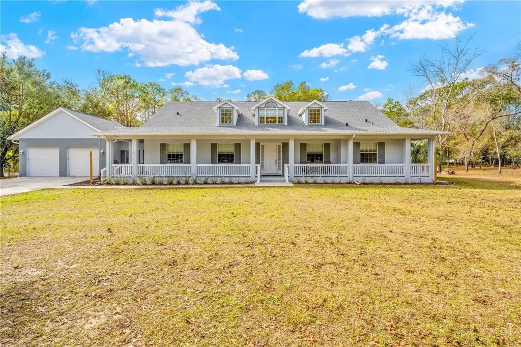 **BROOKSVILLE BEAUTY** Must see this 2007 quality built POOL home with a gorgeous wrap-around rocking chair front porch on 4.60 acres, zoned AR2 (Agricultural Residential 2). This 3 bedroom home with office, 2.5 bath (including pool bath) is 2,651 sq ft of living & 4,275 sq ft under roof. NEW ROOF in 4/2023 with transferable warranty. Efficient SALT WATER POOL has electric heat pump so you can swim in comfort all year long + paver flooring throughout pool area! This beautiful ranch style home has 3 roof dormers that lets in the natural light. Interior features include PORCELAIN TILE throughout the home & carpeting in the bedrooms, all wood HICKORY finished CUSTOM CABINETS, custom blinds, vaulted ceilings with ceiling fans throughout. Master bedroom has french door to back porch/pool area. Master bath includes his/her closets, dual vanities with sinks, big snail style walk around shower. Huge kitchen with quality QUARTZ countertop, all appliances, huge pantry, kitchen dining nook with pool view, formal dining room, great room & living room have french doors to back porch & pool area that includes a convenient 1/2 bath, outdoor shower and a 50 amp box, perfect for a Hot Tub. This home design is loaded with storage cabinets! You will love the big laundry room located in the enclosed breezeway to the garage, offering a washer/dryer, laundry tub & an additional door to front porch. The 2 car garage has separate doors with dual openers & outside garage has a 30 amp box, perfect for an RV hook-up. Front & back porches have tongue & groove spruce ceilings. Home has a 5 ton A/C unit with 2 zones. Property is fully fenced with 4 gates. Home is also being sold with the house only on 1.20 acres MLS W7871588 for 625K. Live in the country with all the conveniences of the city, including the Suncoast Parkway just a few miles away making an easy commute to Tampa.