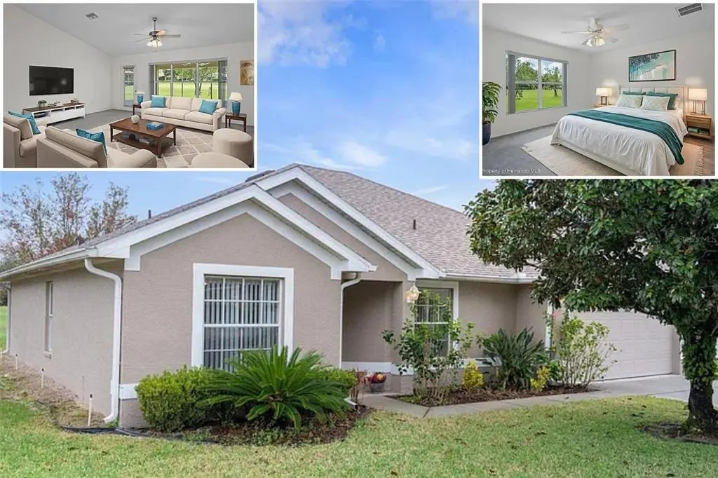 One or more photo(s) has been virtually staged. THIS IS A LOT OF HOUSE IN A GREAT LOCATION! MOTIVATED SELLER! BRING OFFERS! Check out this beautiful 4 BEDROOM, OPEN CONCEPT, SPLIT FLOORPLAN with a STUNNING VIEW of THE 17TH GREEN at the SHERMAN HILLS GOLF CLUB! Major Maintenance items already done with NEW ROOF (2023) AND NEW AIR-CONDITIONER (2023) NEW EXTERIOR PAINT IN 2022! VAULTED CEILINGS, NEW GARBAGE DISPOSAL AND NEW DISHWASHER AS WELL! Interior laundry room with WASHER AND DRYER INCLUDED, oversized pantry and a thoughtful island in the kitchen. Spacious primary bedroom with views of the golf course. In suite bathroom, dual vanities and oversized garden tub/shower combo. Dual large walk-in closets as well! 3 Spacious bedrooms on the opposite wings share a roomy 2nd bathroom with shower/tub combo. NO REAR NEIGHBORS, ENJOY A LOVELY VIEW OF THE 17TH FROM YOUR NEW SCREENED IN PORCH, PERFECT FOR RELAXING AFTERNOONS AND ENTERTAINING! NO CDD AND LOW HOA OF ONLY $200/YEAR AND YOU GET $50 BACK IF YOU PAY IN FULL! Centrally located in the path of progress at the intersection of I-75 and SR-50 you can quickly get to Tampa International Airport, downtown Tampa, beaches, lakes, trails, Disney and some of the best springs in Florida including Weeki Wachee, Three Sisters, Rock, Rainbow, Silver Glen, Juniper, Alexander and tons more! Live your best Florida lifestyle and schedule your showing today!