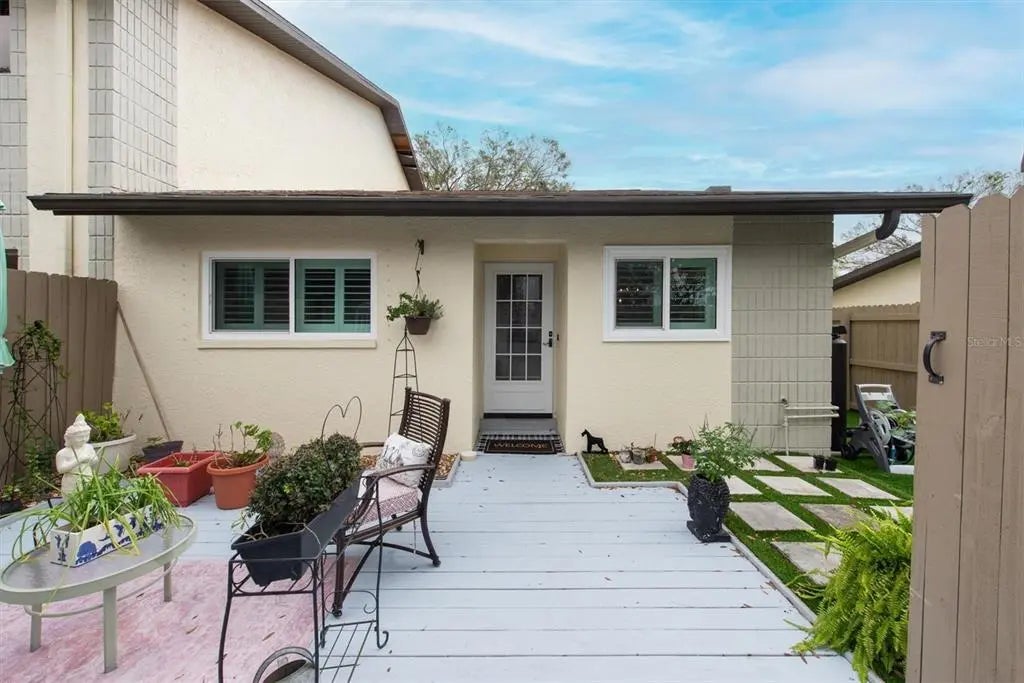 Charming 2-bedroom, 2-bath villa in the highly desirable Whitney Lakes community of Clearwater, FL. This end unit offers privacy with extra outdoor living space, serene pond views, carport and storage shed for added convenience. The home is in prime location, just minutes from St. Pete/Clearwater Airport, shopping, restaurants, and beautiful beaches. Inside, you'll find a bright and open floor plan with vaulted ceilings and plenty of natural light. The living area features a cozy wood-burning fireplace, and the updated kitchen includes stainless steel appliances, quartz countertops, and a breakfast bar that opens into the living and dining spaces. LVP flooring throughout for easy maintenance. The spacious primary suite boasts a double-door entry, a custom walk-in closet, and an updated bath with granite countertops, tile, and a glass shower. The guest room is equally spacious and offers an updated bath for added comfort. Enjoy the Florida lifestyle in the sunroom, which overlooks the tranquil pond. Other updates include new windows and doors (2021) and a roof (2020). Additional features include plantation shutters, in-unit laundry, a cute front patio, and community amenities such as a pool and spa. Perfectly situated near all the best Clearwater has to offer, this home is a must-see!