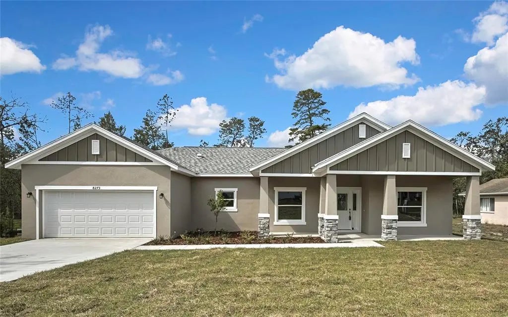 Ready now! WOW, another beautiful Craftsman style home by long time established custom builder in community. Plenty of privacy, sits on a large 1/2-acre lot. Three Bedroom with an office. Builder warranties. Gorgeous, open floor plan layout; 10' ceilings; 10'8'' tray ceiling in Master Bedroom and Great Room. Master suite with walk-in closet; soaker tub; shower; Dual Sink vanity. Granite counter tops in kitchen and baths; Custom Kitchen cabinetry; Center Island; Pantry. Beautiful custom wood trim windows and doors; Laundry room w Laundry drop from Master Bedroom; 2 car garage with side access door. Covered large Lanai overlooking the huge yard, plenty of room for a pool! Fence to the west side of property soon to be installed. County water and sewer. No HOA or CDD fees. Close to Beach, Fishing, Boating, Shopping, Dining, and Golfing. Call today!
