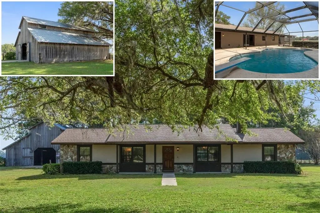 One or more photo(s) has been virtually staged. 3/2 POOL HOME ON 10+ HIGH AND DRY ACRES WITH LARGE 42X48 TREATED PINE BARN ALL WITH 465' OF FRONTAGE ON JUMPER CREEK! Perimeter Fenced and Cross Fenced With Deeded ownership to the Middle of Jumper Creek. Large Lanai, deep pool, diving board all fully screened in with pool cage. Massive Barn with Concrete Floors, 2nd Story Loft, Half Bathroom, Electric and Water, Large Double Doors in Front and Back. Water run to all Pastures, 5 acre pasture with Irrigation Perfect for Farming or Gardening. Agricultural zoning so bring all your animals! Chlorinator water system/water softener that supplies both the home and barn. Wood burning Fireplace in Living Room. Large additional Family Room for potential conversion to primary suite or 4th bedroom. New roof (2025), Fresh Paint (2025), Pool Resurfaced (2022), Both Bathrooms Updated (2021), Hot Water Heater (2019), AC (2015) with semi-annual servicing. Only needs the finishing touches to complete the transformation to the perfect country paradise. If you’re tired of subdivisions and big cities, you will find this stunning property may just be the perfect spot for you. This home is conveniently close to major highways (SR 50, I-75, Florida's Turnpike, and US 301) and centrally located for quick access and commute to The Villages and the major cities of Ocala, Tampa and Orlando. MOTIVATED SELLER, BRING OFFERS!