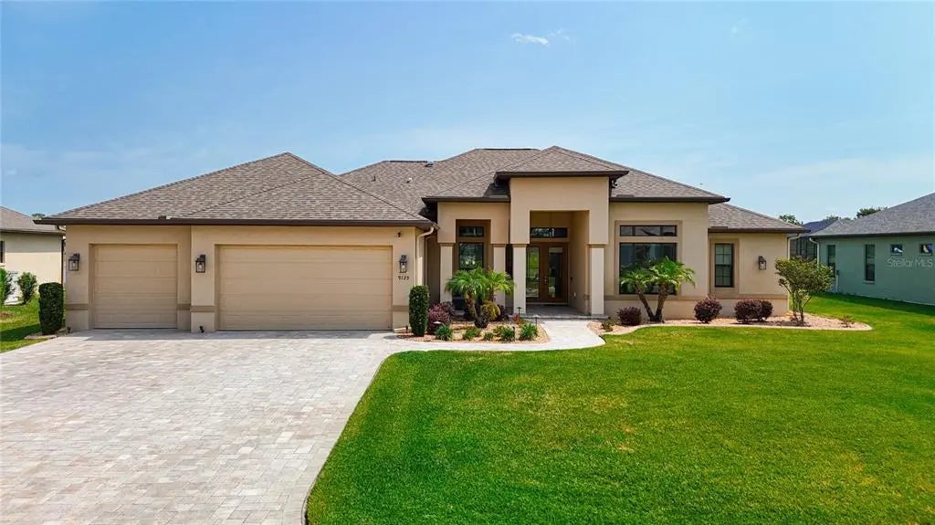 Experience modern elegance with this STUNNING 2019 Home with breathtaking pool and lake views located in the exclusive, gated Glen Lakes Golf Course community. This expansive home features 3 bedrooms +large study/office, 3 full baths, 3-car garage and a heated pool. As you approach, you will be greeted with a beautiful brick-paved driveway and walkway that leads to a stunning 8-foot double-door entry. The grand entrance leads the formal entry into the warm and welcoming living room featuring soaring ceilings, recessed lighting, and pocket sliding doors giving picturesque views. The gourmet chef’s kitchen is every cook’s dream with beautiful soft-close cabinetry, extended granite counters, stainless steel GE appliances with a Wi-Fi built-in oven and a gas stove, microwave, closet pantry and a separate coffee bar counter. The eat-in area offers picturesque views from the expansive windows. This split bedroom plan features a huge owner’s suite with tray ceilings, recessed lighting, double walk-in closets and door to pool with built-in blinds. The luxury master bath has a gorgeous walk-in-tiled shower, a garden tub and double sinks with granite counters and soft-close cabinets. The second and third bedrooms are both roomy in size. The 8’ double doors lead to a huge study/office that could easily be a 4th bedroom with tray ceilings and recessed lighting. The 2nd & 3rd bathrooms have beautifully tiled showers with frameless glass doors, granite counters and soft-close cabinets with the 3rd bath accessible to the pool. The dedicated laundry room offers soft-close cabinetry with granite counters and a deep sink. The oversized 3-car garage offers a sauna, and a sliding screen door to inside the home. Step out back to your expansive lanai with a Diamond Brite heated pool to enjoy your morning coffee or to watch the wildlife on Bird Island such as Eagles, Osprey, Cranes, right from your own private oasis. There is an extended paver walkway that is the perfect grilling area with a gas line stub out for outdoor grilling. The beauty and elegance of this home will have you fall in love with it the moment you arrive. Additional features include a whole house 24kw Generac generator with a 10-year transferable warranty, underground 250-gal propane tank, seamless gutters, new landscape curbing and landscape lighting around the home, added exterior outlets, TV mounts with hidden outlets, and an extermination preventative plan in place. The social & golf memberships of Glen Lakes offer a variety of activities to suit any taste. From the avid golfer to the individual interested in socializing. The 18-hole championship golf course winds throughout the community. A full practice facility with driving range, putting green, pitching and bunker allows you to fine tune your game. Along with professionally run golf events, a full social calendar awaits you. The Club offers lighted tennis courts, pickleball, a junior Olympic pool, hot tub, billiards room, fitness room, playground for the kids, restaurant and bar, games, craft and computer/library rooms. Professionally staffed golf shop, fishing with stocked ponds and banquet facilities. Of course, with a quality golf course on site, comes the Men's and Women's Golf Associations.