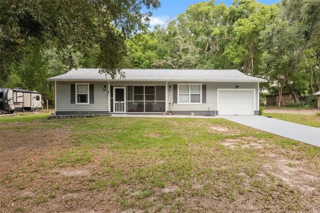 Welcome to Your Perfect Private Retreat This beautifully updated 3-bedroom, 2-bathroom home sits on just over 1 acre of serenity. With no HOA, no deed restrictions, and AR zoning, this property invites you to live life your way. From its brand-new roof (2025) to the new drain field, water softener, and well pump, every detail has been thoughtfully addressed, so all you have to do is move in and enjoy. Step inside and fall in love with the light, bright open concept living and dining spaces, featuring a split floor plan that ensures privacy and comfort for everyone. The home boasts gorgeous updates throughout, including modern finishes and stylish touches that elevate every room. The galley kitchen offers endless cabinet and countertop space, perfect for whipping up your favorite meals. Bonus points: there’s NO carpet anywhere, making clean-up a breeze. And if you love what they have picked out, most furniture is included in the sale! Outside, you’ll find even more reasons to love this property. The screened-in front porch is ideal for morning coffee or evening relaxation, while the RV pad with power and water is ready for your next adventure-on-wheels. And because this home is perfectly placed on its acre lot, you’ll enjoy unmatched privacy tucked away from the road. Convenience meets tranquility in this prime location. You’re just 1 mile from grocery stores, dining options, and Advent Health Hospital. Plus, Tampa airport, Amalie Arena, and Raymond James Stadium are less than an hour away, making it easy to get wherever you need to be. This home is more than a house; it’s a haven. Schedule your showing today and experience the charm, privacy, and convenience for yourself!
