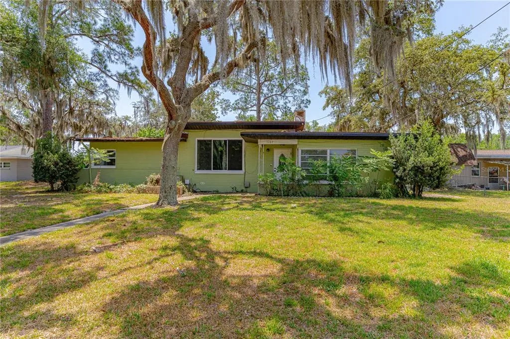 Under contract-accepting backup offers. Short Sale. This mid century modern 3-bedroom, 2-bath pool home is located just minutes from Downtown Leesburg, Lake Griffin State Park, UF Health Leesburg Hospital, and a variety of shopping, dining, fishing, and boating activities. This home features Burgundy Cherry Wood kitchen cabinets paired with granite countertops, and vinyl plank flooring throughout the main living areas for style and durability. Guest bathroom features a jet tub, heated seat, micro bubbles, and color lighting. Step outside to your private screened pool area, with stone pavers surrounding both the pool deck and driveway, perfect for outdoor entertaining. The fully fenced backyard offers ample space for pets, play, or gardening, and is graced by well-established mango, pear, lime trees and 3 pineapple plants.