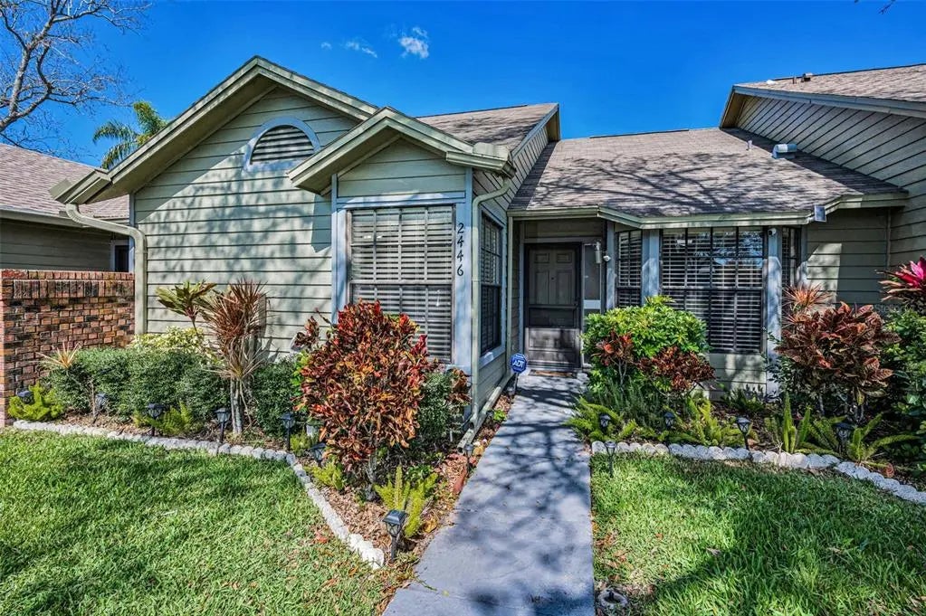 One or more photo(s) has been virtually staged. Welcome Home to Bentley Park in Palm Harbor. Enjoy living in a quiet neighborhood community. Fantastic 2 bedroom villa includes a fireplace and an additional screened “sunroom” with vinyl windows. Two parking spaces, one covered, are comfortably located in front of the villa. Underground electrical and in a “no flood zone” adds extra security with no damage from recent storms. Great floorplan. The kitchen has room for a table, white appliances and a pass thru to the gathering room. Spacious gathering room for dining and relaxing by the fireplace. Bedrooms are in a split plan. The primary bedroom has an ensuite bath. The additional sunroom adds extra living space for reading, exercise, playroom, or for just enjoying the outdoor view. Indoor laundry room with washer and dryer conveying. Live maintenance free! HOA fees include grounds maintenance, water, sewer, trash, cable and access to the year-round heated community pool, Jacuzzi, tennis, cabana and park with playground. Bentley Park is conveniently located with easy access to medical facilities, hospitals, shopping, dining and highly rated schools. This home is zoned for Palm Harbor University High School. A short drive will take you to all Tampa Bay has to enjoy with beautiful beaches, attractions, sporting venues and the Tampa International Airport. Be sure to watch the video for more photos!